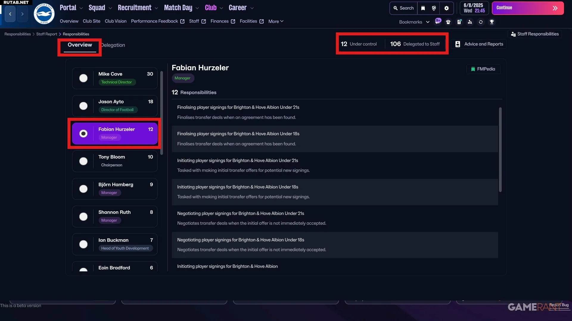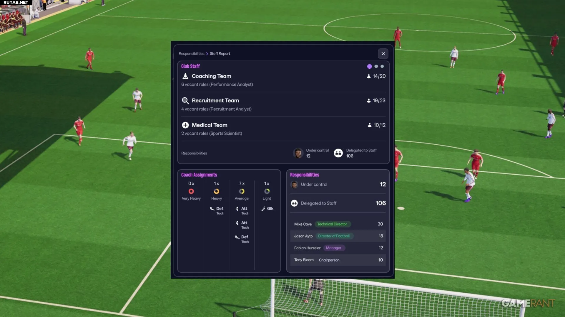 Если вы стремитесь к погружению в игру, то делегирование реалистично — менеджеры редко контролируют всё, особенно в современном футболе. Масштаб делегирования может зависеть от клуба. Например, крупные клубы могут позволить себе больше сотрудников, чтобы распределить обязанности и облегчить работу менеджера.