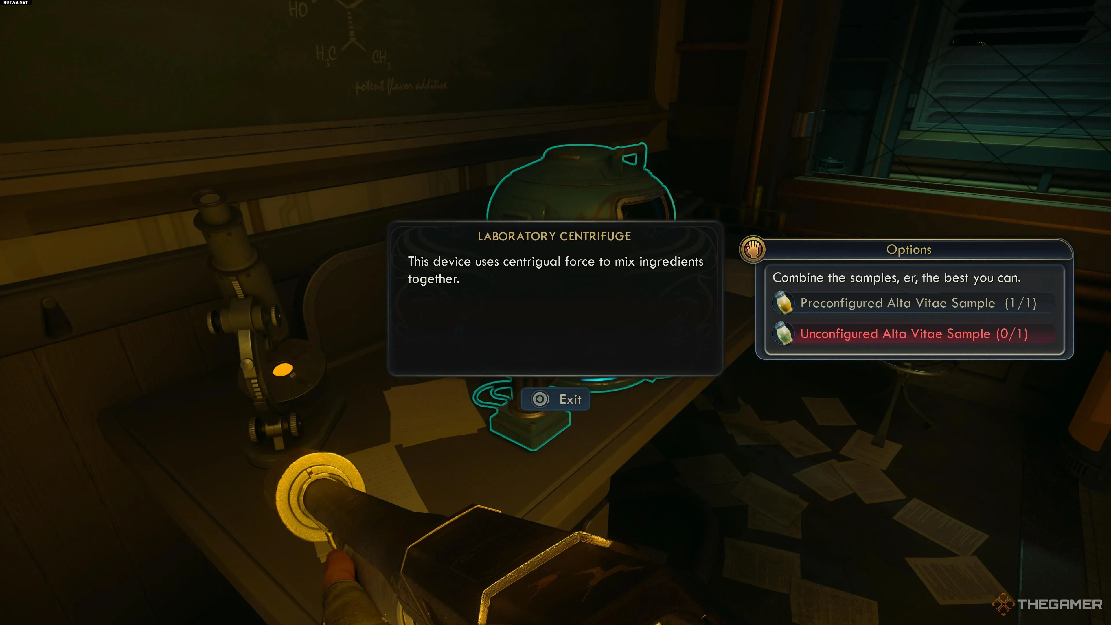 Доступный вариант — смешать оба этих образца в ближайшей центрифуге. Однако есть загвоздка — вы не можете выбрать, что получите. Неясно, какой именно комбинированный образец вы получите, но, предположительно, это зависит от проверки вашего навыка Наука. Следовательно, без этого навыка вы, скорее всего, получите Неквалифицированно настроенную смесь Алта Витае. Это компромиссный вариант. Странно перенастроенная смесь Алта Витае была бы идеальной.
