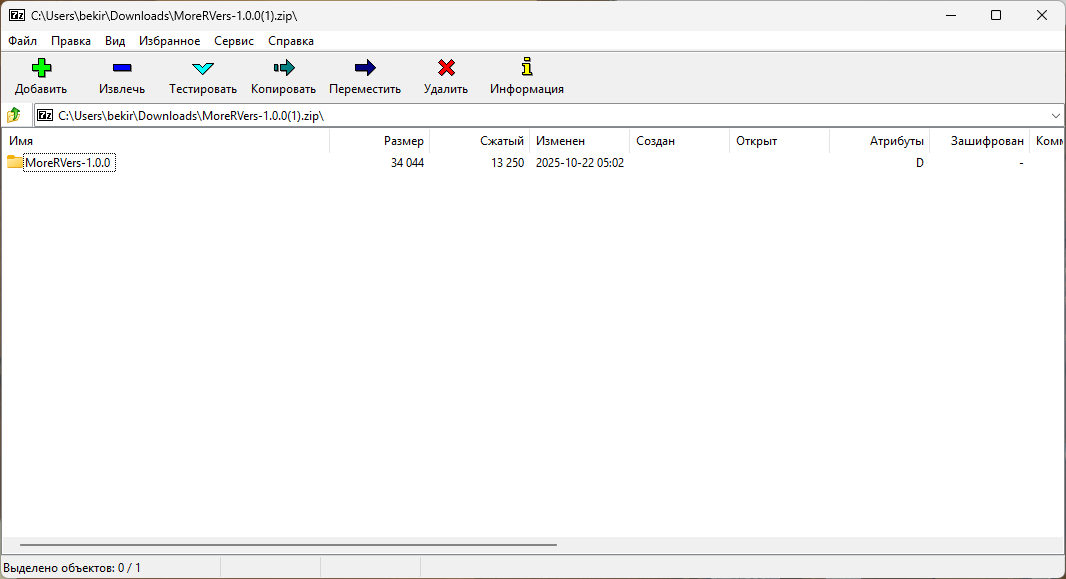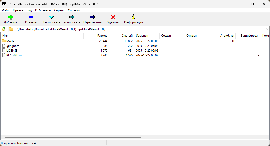 Внутри архива откройте папку MoreRVers-1.0.0 и найдите папку Mods: