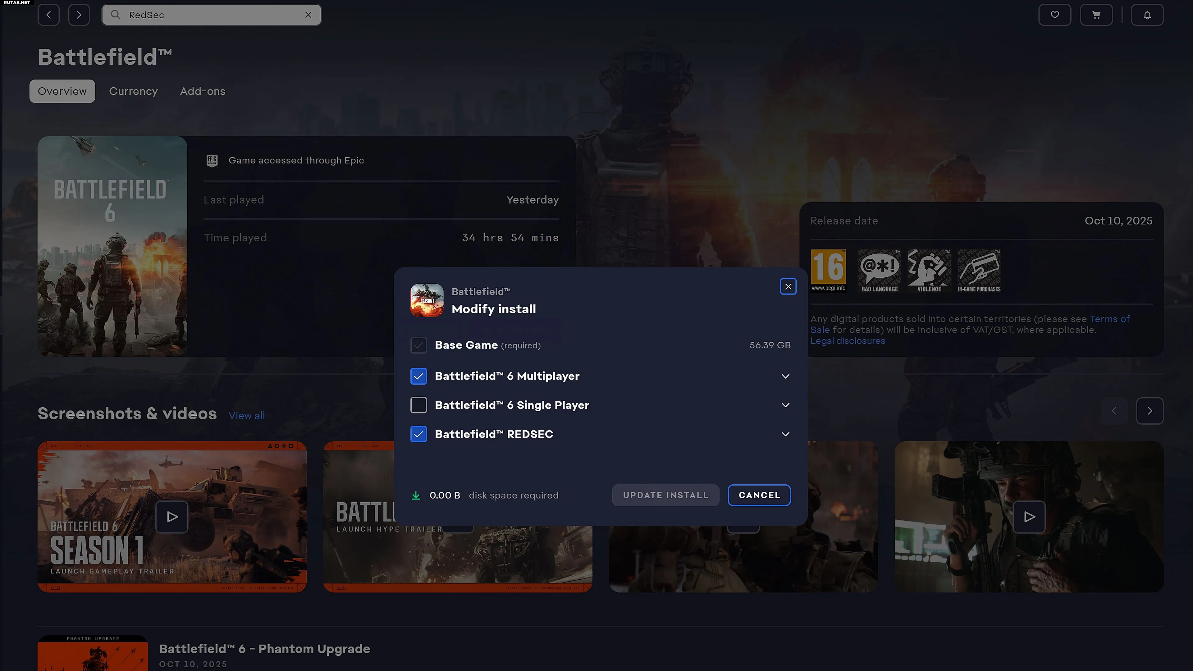 - Отметьте Battlefield 6 REDSEC для загрузки режима