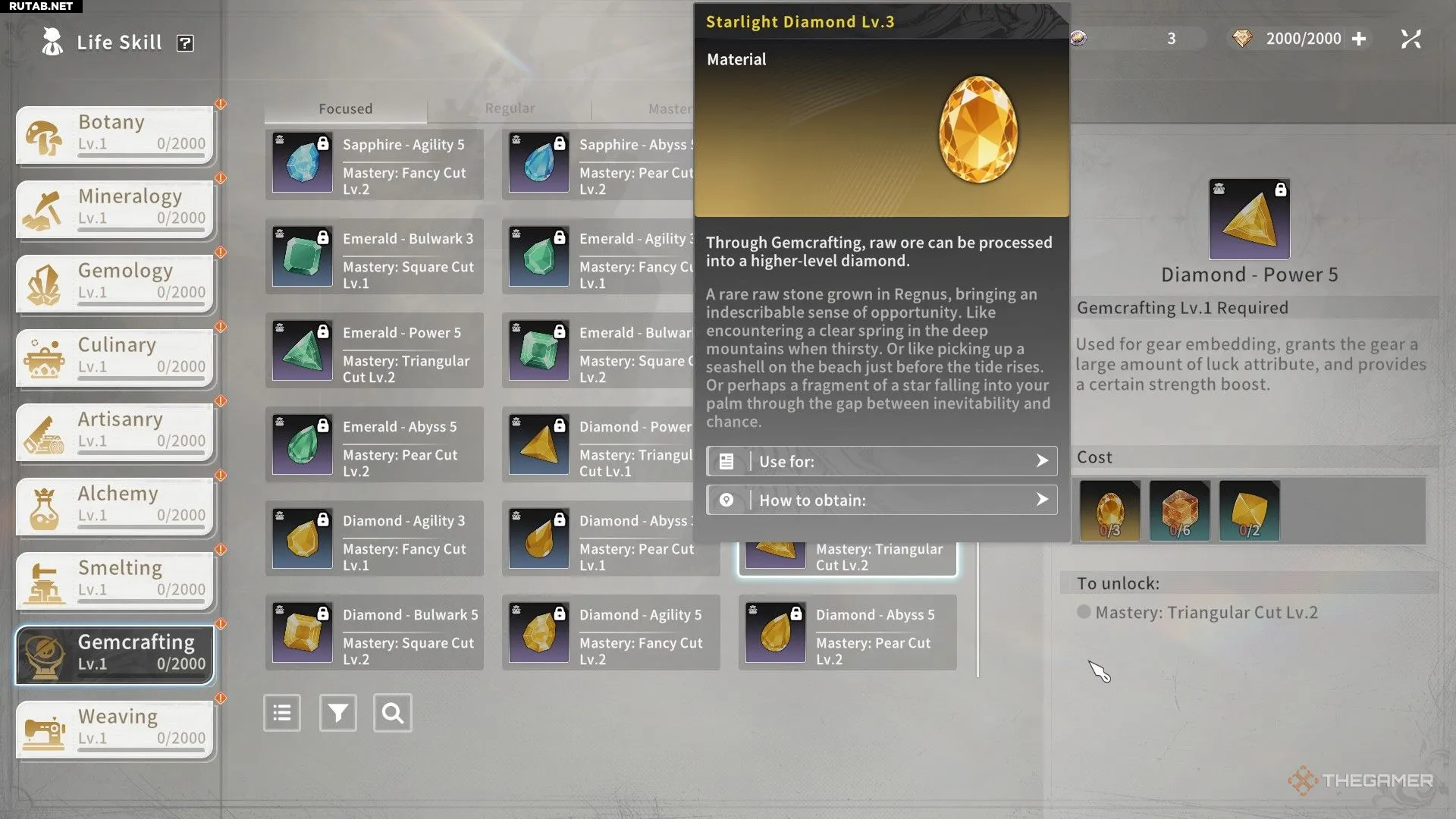 | Треугольная огранка Ур. 1 | Возможность огранки необработанных камней Ур. 2 в треугольные самоцветы Ур. 3, улучшающие силу при установке |