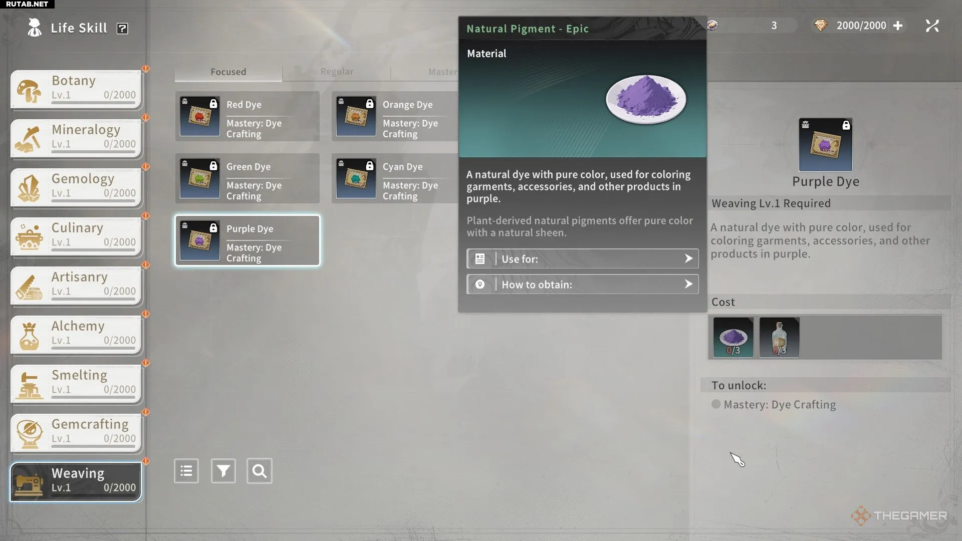 - Ткачество — используется для создания одежды для вашего персонажа и красителей для её перекрашивания.