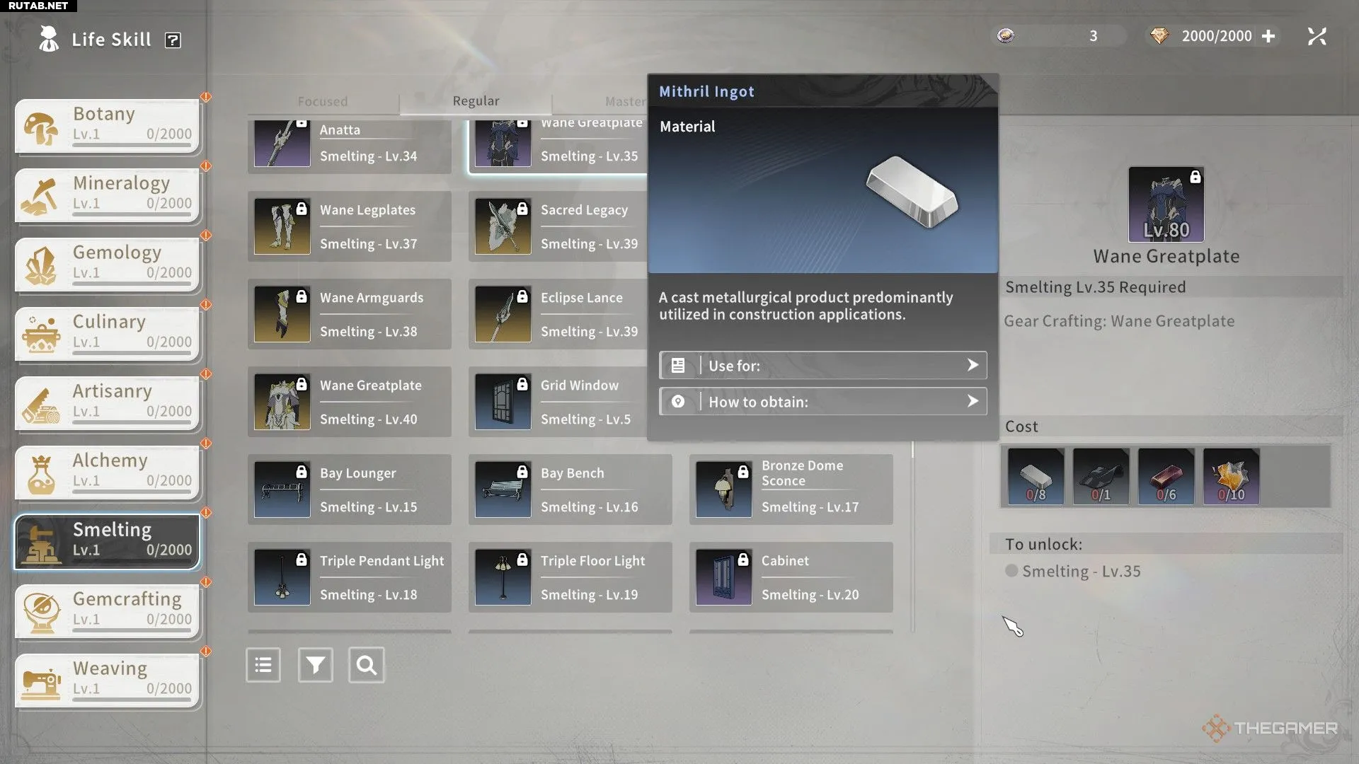 | Обработка металла Ур. 3 | Открывает рецепты с использованием мифрила |