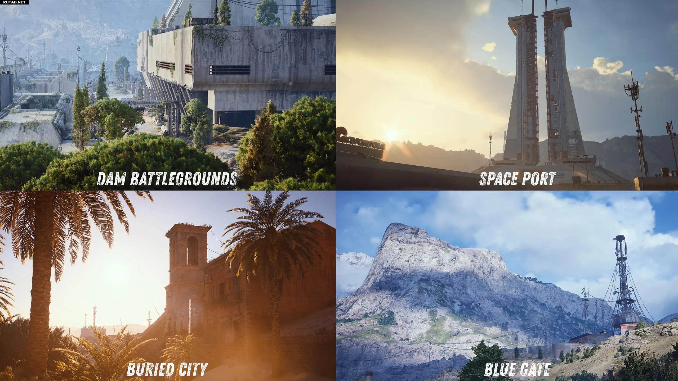 - Buried City: Вторая карта, представленная в более ранних технических тестах. Это заброшенный город, погребённый под песчаными дюнами. Ключевые локации включают торговый центр, больницу, жилые здания, центральную площадь и образцы старой архитектуры.