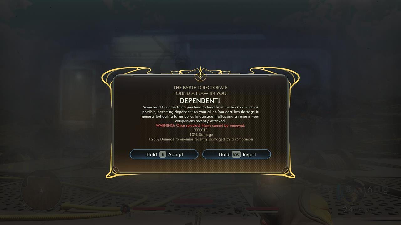 Выбор: зависит от ситуации. Выбор этого недостатка имеет свои нюансы. Его полезность напрямую зависит от тех спутников, которые сейчас в вашем отряде. В идеале у вас должны быть персонажи, способные наносить урон по площади или периодический урон, чтобы бонус +25% действовал более стабильно. Эффективность можно повысить, разблокировав модификации для каждого спутника, чтобы улучшить их боевые способности.