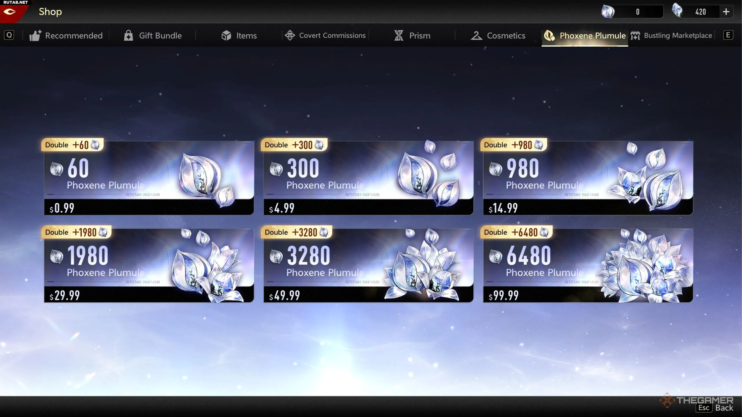 Phoxene и Phoxene Plumule — основные валюты для покупки Pristine и Prismatic Hourglasses соответственно. Эти песочные часы используются для совершения попыток в гаче. Поскольку система не влияет на игровые преимущества, основным источником валюты становится реальные деньги. На старте игры Phoxene и Plumule можно получить только за покупки.