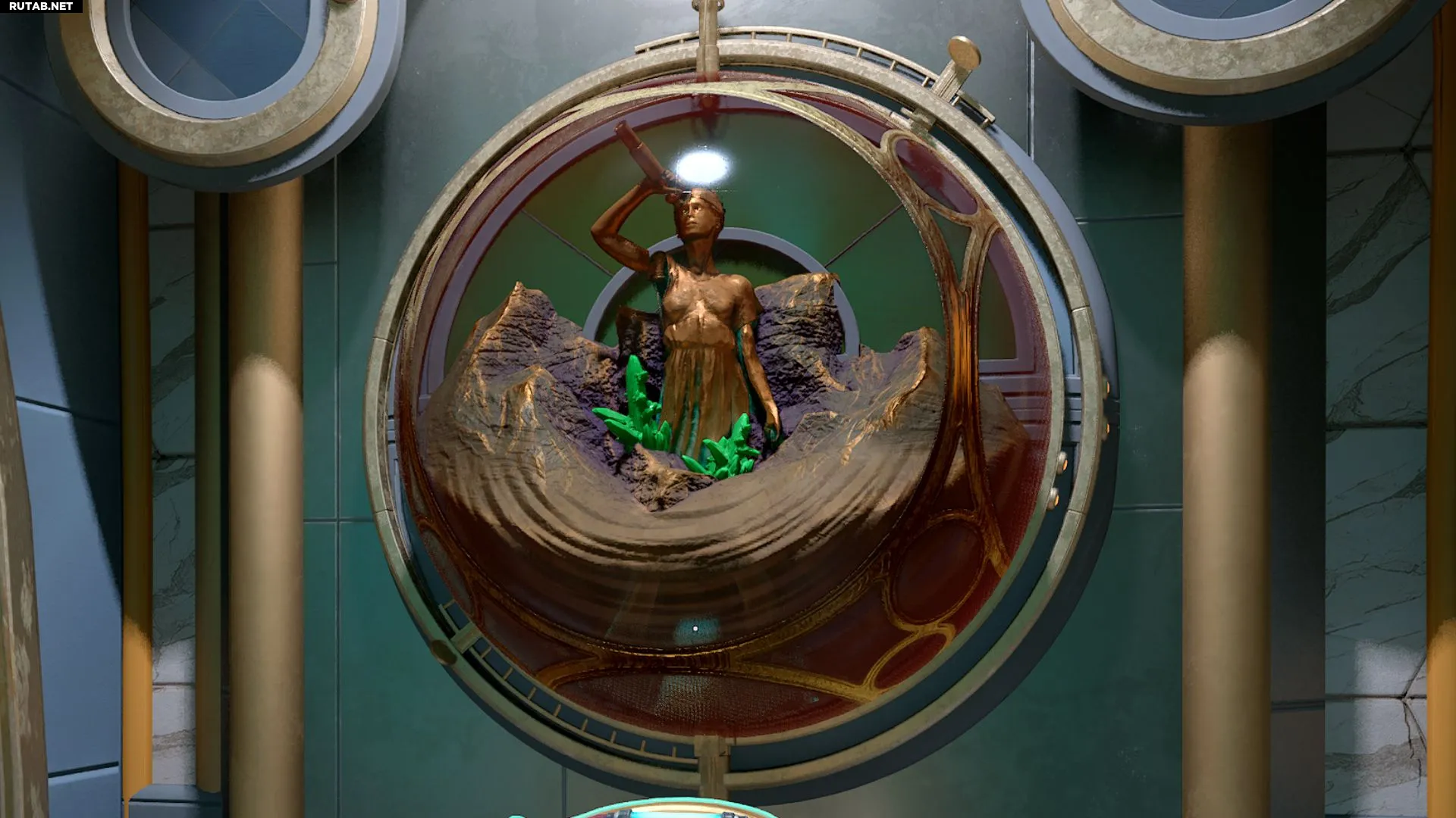 - Планетарий снаружи Обсерватории — даёт ответ на третью загадку; обратите внимание на планеты, вращающиеся друг вокруг друга (Клостер и Претор), и на вращение Эдена (маленькой зелёно-голубой луны).