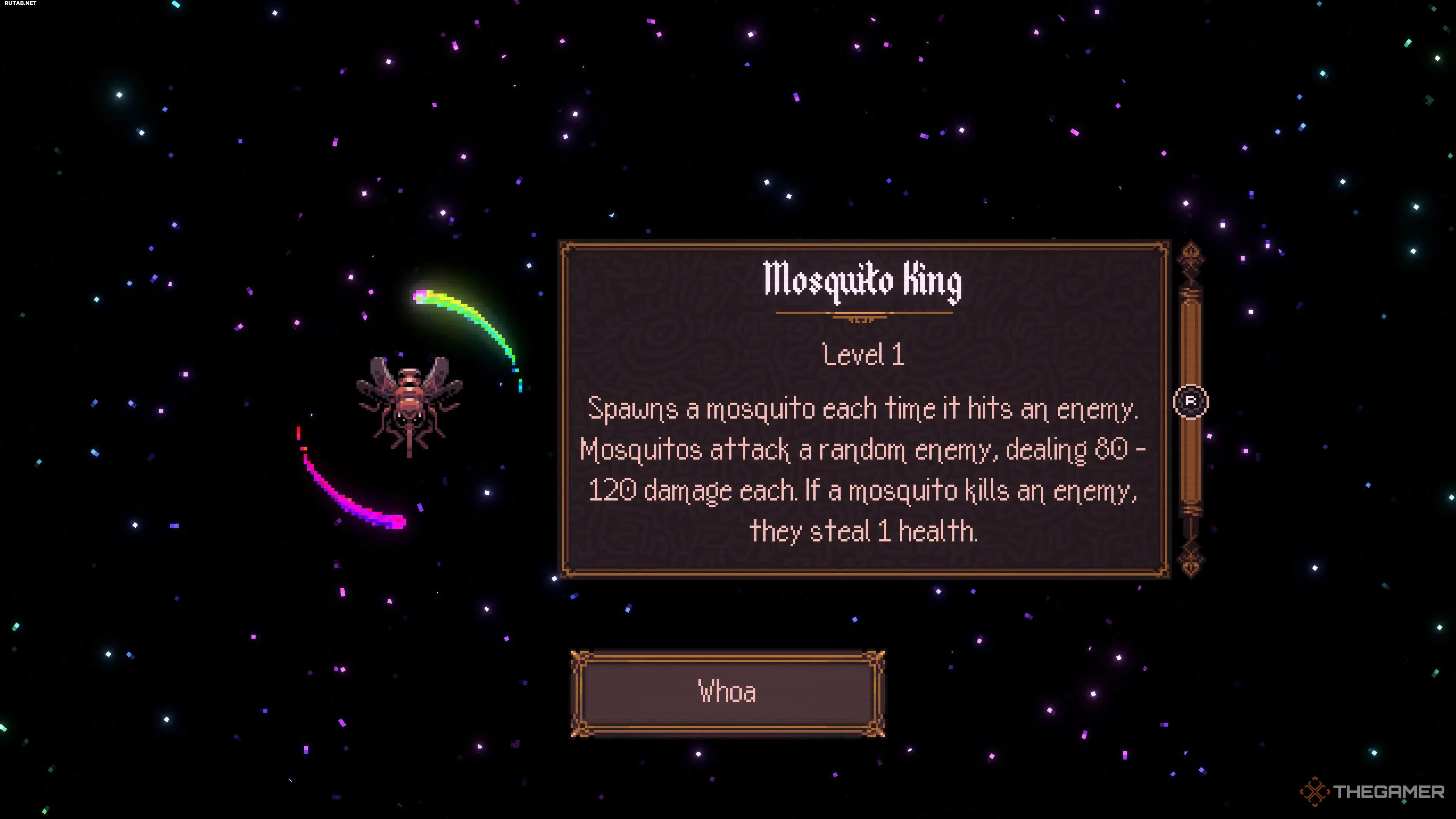 Кража здоровья в целом не так хороша в Ball x Pit. Хотя «Вампир» может помочь в первые минуты, он быстро становится слабее по мере прохождения уровней. Но если вы сможете быстро создать «Короля-комаров», это уже другая история.
