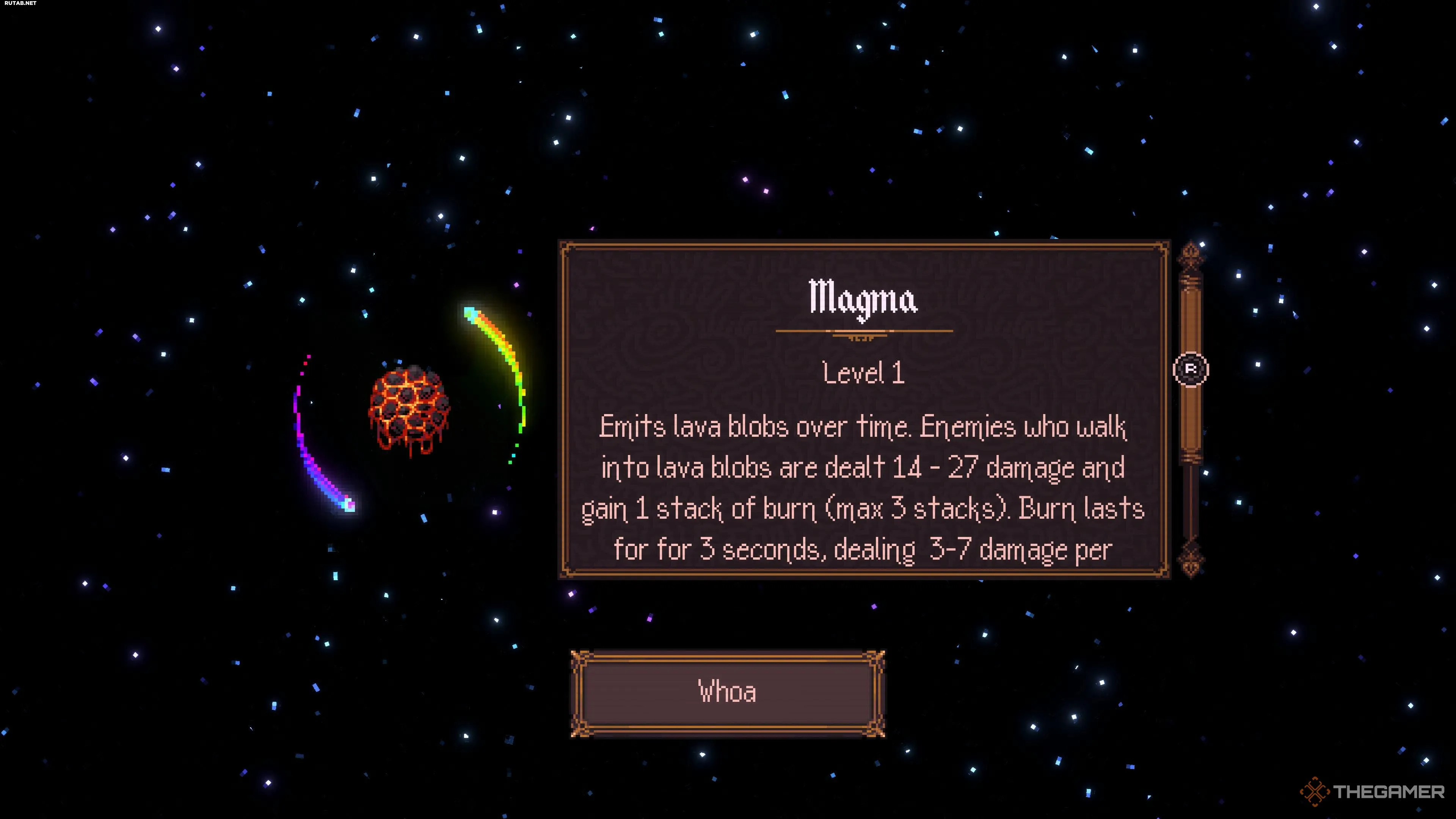 Если вы прокачиваете свой «Огненный» шар и не находите «Железный», то «Магма» станет хорошей заменой. Медленно, но верно сгустки начнут продвигаться по арене к врагам, добавляя стаки горения, которые наносят периодический урон.