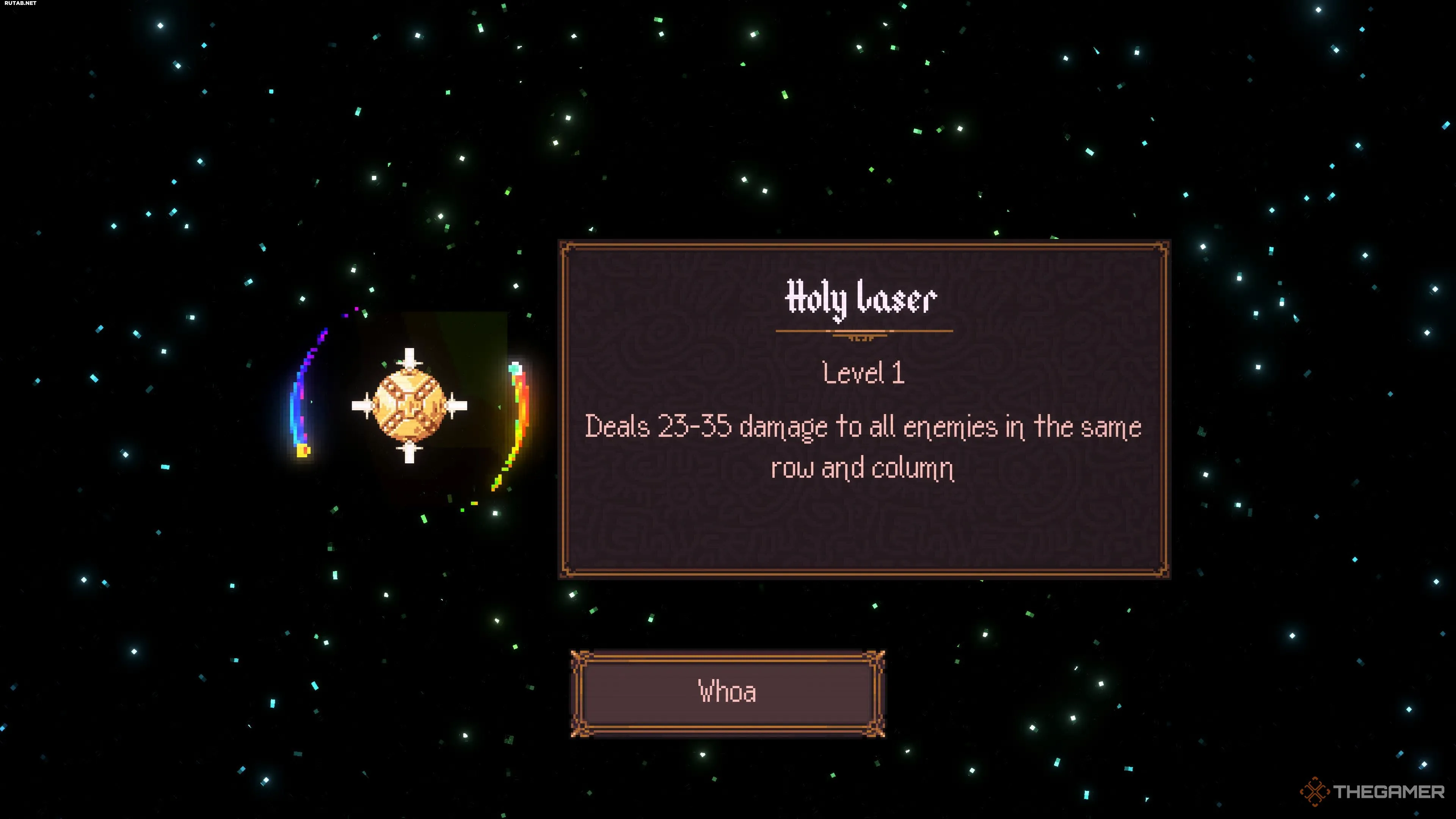 Требуется немного прокачки и удачи, но наличие двух простых «Лазеров» уже поможет на ранних этапах забега, так что ожидание эволюции вряд ли станет проблемой. И, как и многие эволюции, вы можете смешать «Святой лазер» с элементом по вашему выбору, чтобы добавить ещё один эффект.