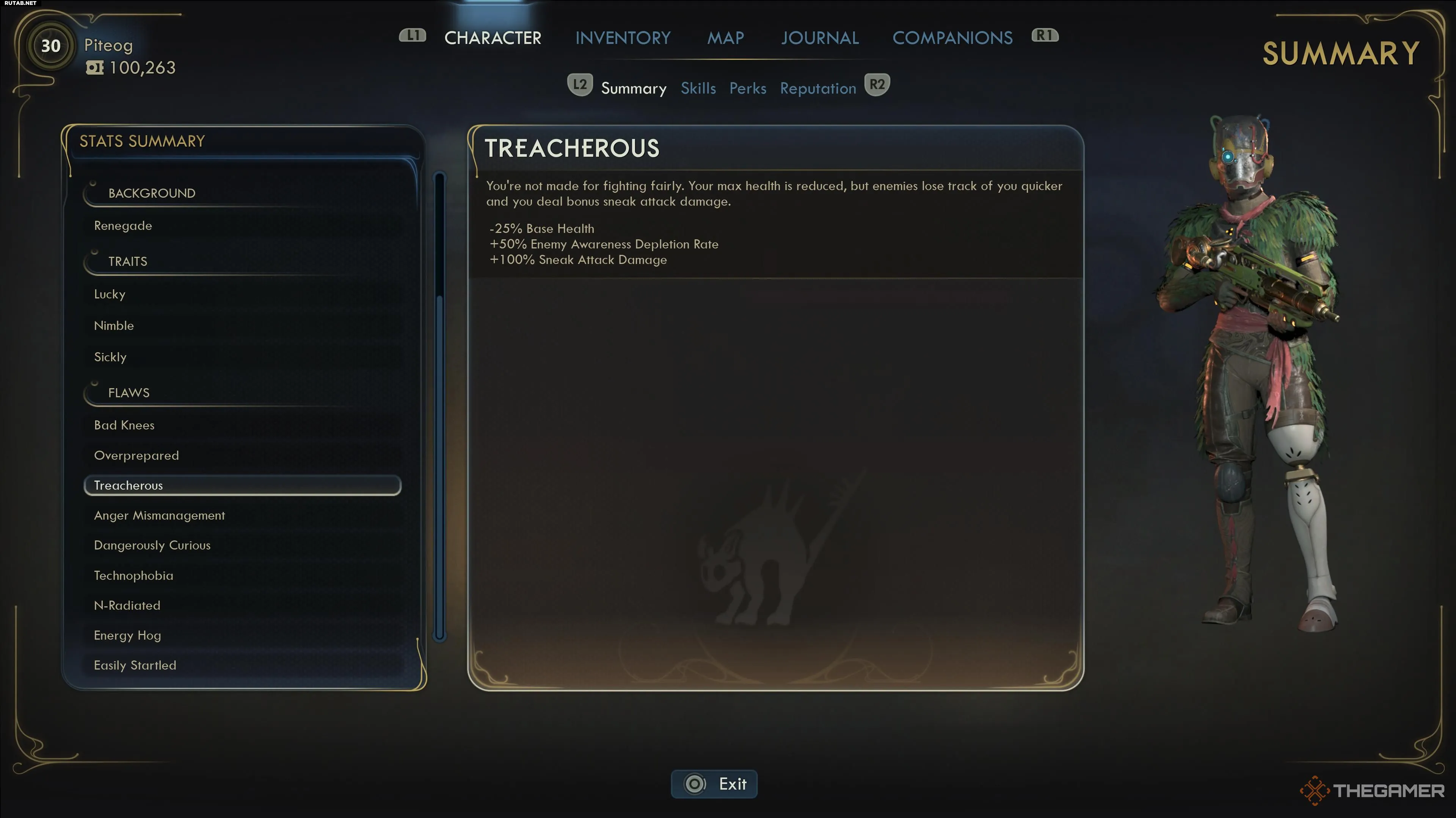 Вероломный — отличный Недостаток, но его стоит брать только для очень специфических стилей игры. С ним ваше общее здоровье значительно снижается, но урон от скрытной атаки удваивается, и этот бонус суммируется с другими модификаторами урона от скрытных атак.