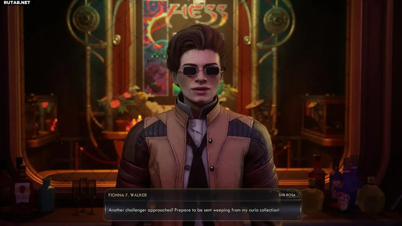 - Зайдите в салун на Станции «Свободный рынок» и поднимитесь на второй этаж. Там вы встретите NPC по имени Фионна Ф. Уокер из организации «Саб Роса».