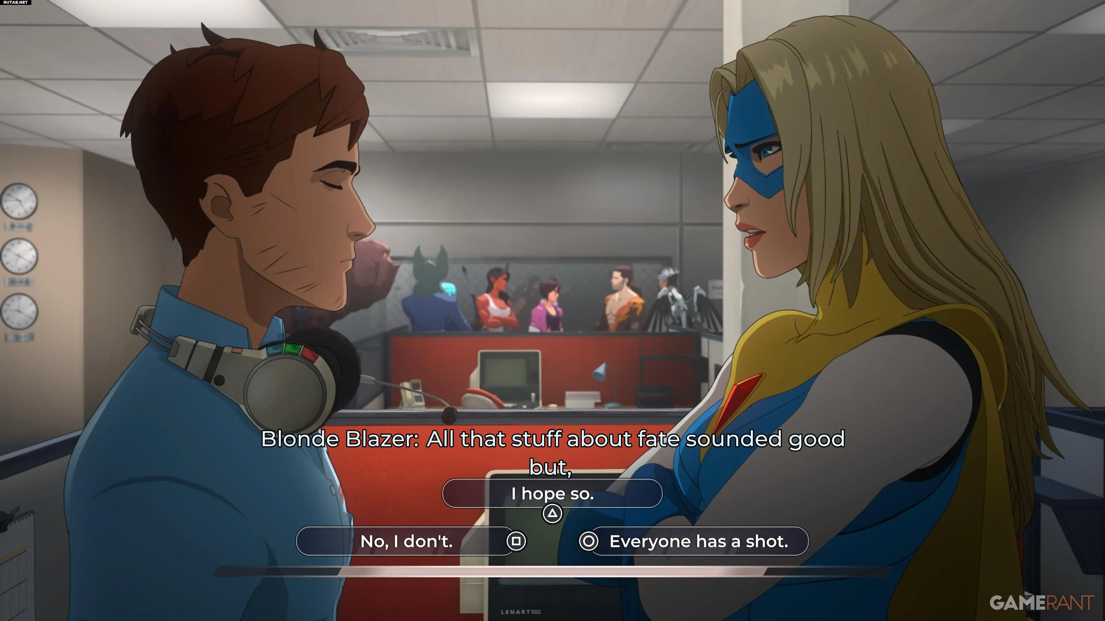 После завершения первой смены Dispatch все соберутся в переговорной комнате, где вам предложат несколько вариантов диалога — некоторые из них могут повлиять на отношения с определёнными членами команды: