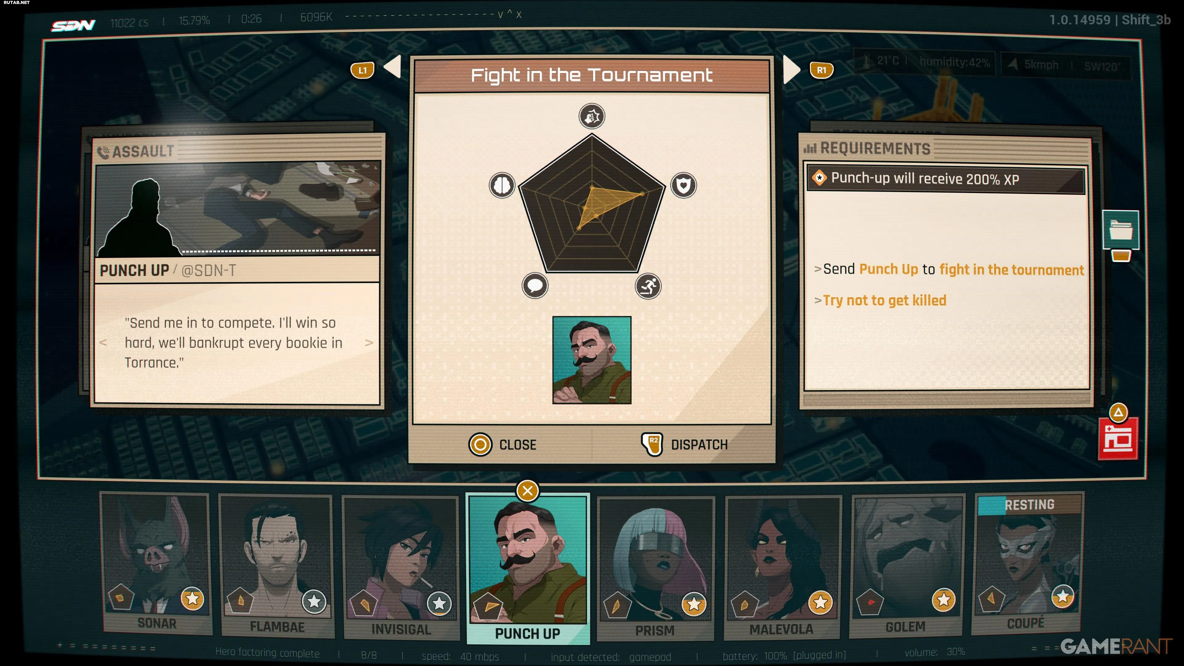 После этого начнётся вторая смена Dispatch, и на этот раз команда будет работать гораздо слаженнее. Во время вызова на турнире, если вы отправите Punch Up и он справится, вы получите дополнительный опыт для него, и он это запомнит. После этого продолжайте выполнять другие вызовы, и у вас состоится разговор с Invisigirl в парке. Вам будут доступны два варианта диалога: