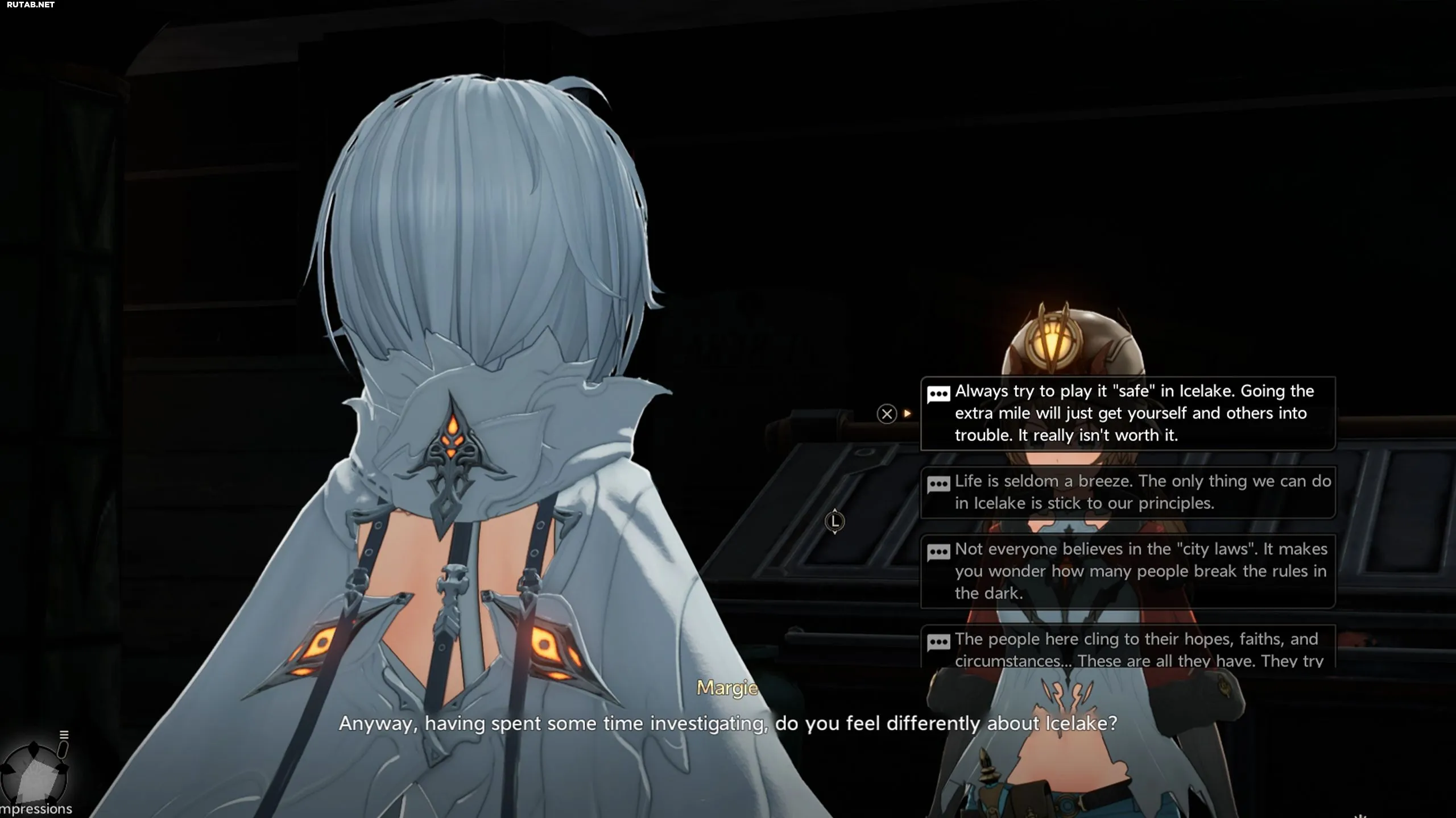 Чтобы активировать квест, завершите основной сюжет «На лёгком ветру» из первой главы «Ноктовояжер». Затем найдите Марджи возле дома Аутсайдера — она стоит перед доской объявлений. Поговорите с ней, и она спросит о жизни в Айслейке. Выбор ответа повысит одну из характеристик впечатлений.