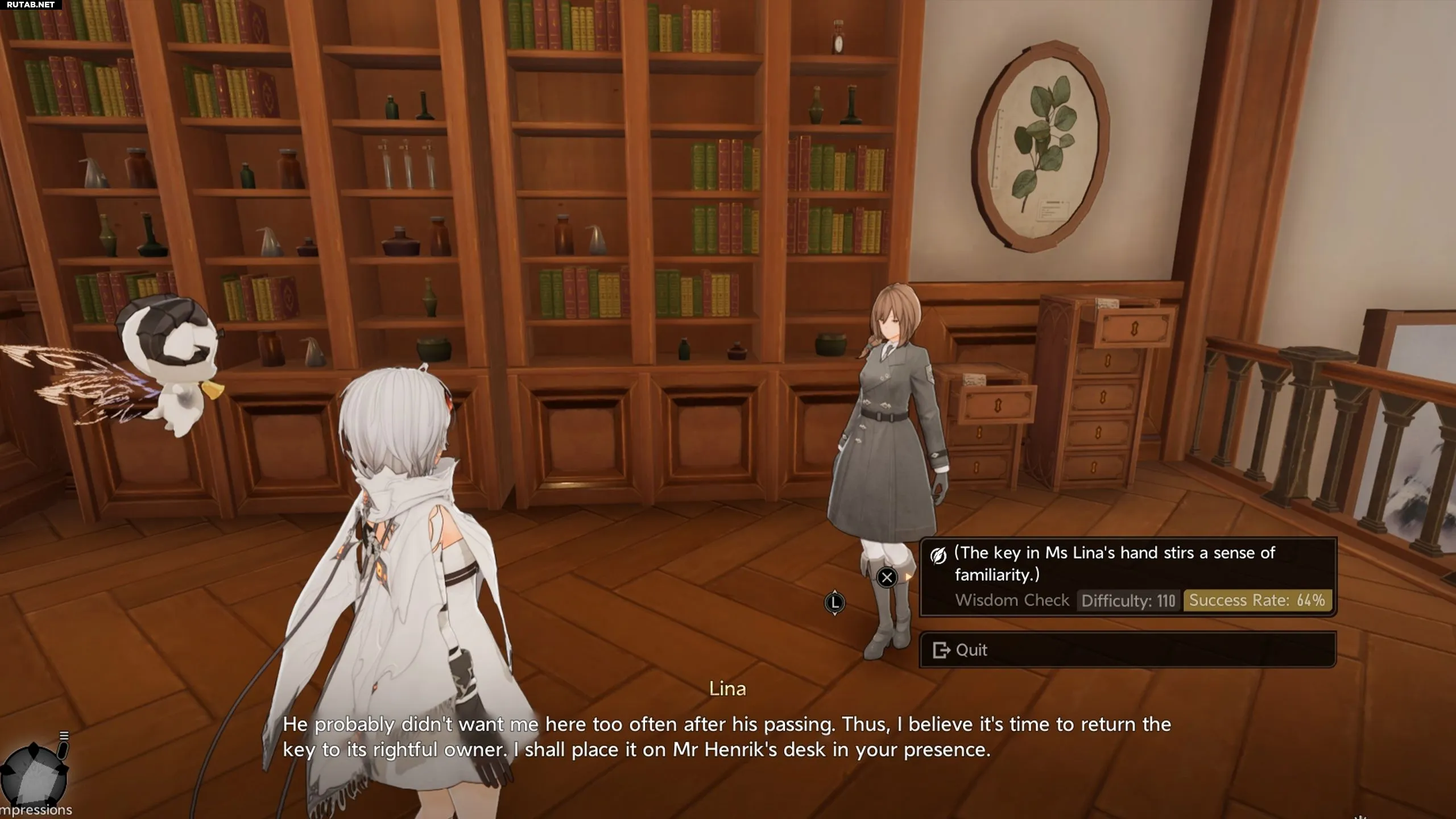 В Доме Гипноса на втором этаже вы встретите Лину, которая убирается. Поговорите с ней и пройдите проверки Эмпатии и Мудрости, чтобы начать расследование ключа. Это запустит квест «Последний „контракт“». Идите в офис Хенрика, откройте сейф ключом, решив мини-головоломку. Вы найдёте завещание, где Хенрик оставляет всё Лине в благодарность за труд.