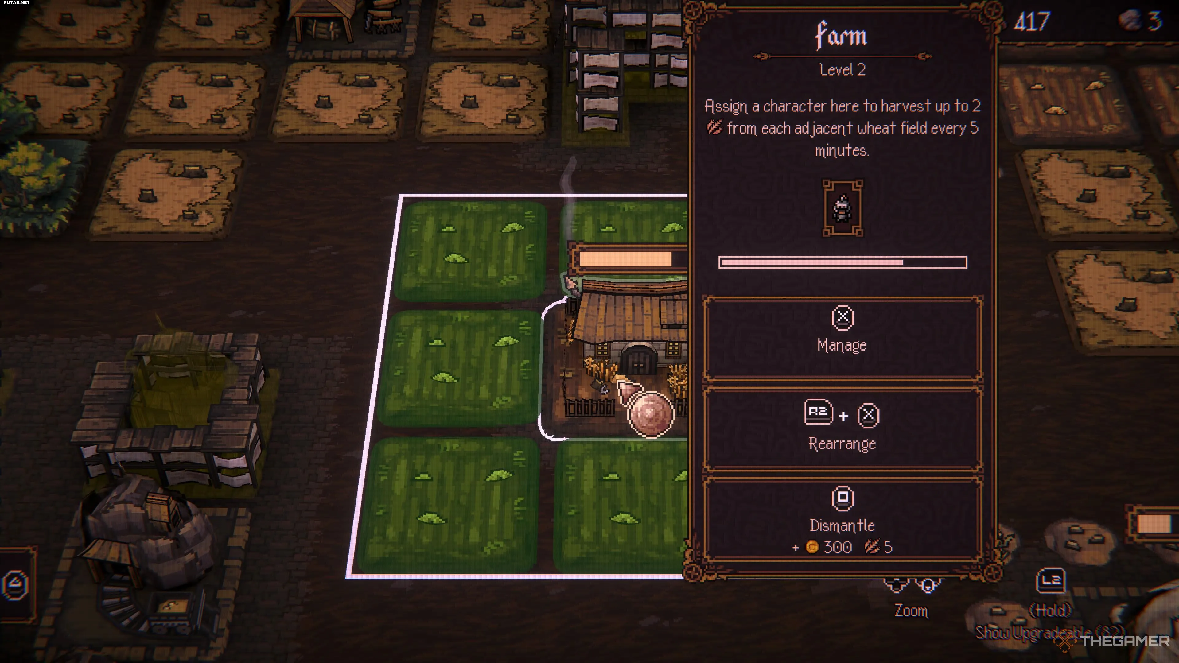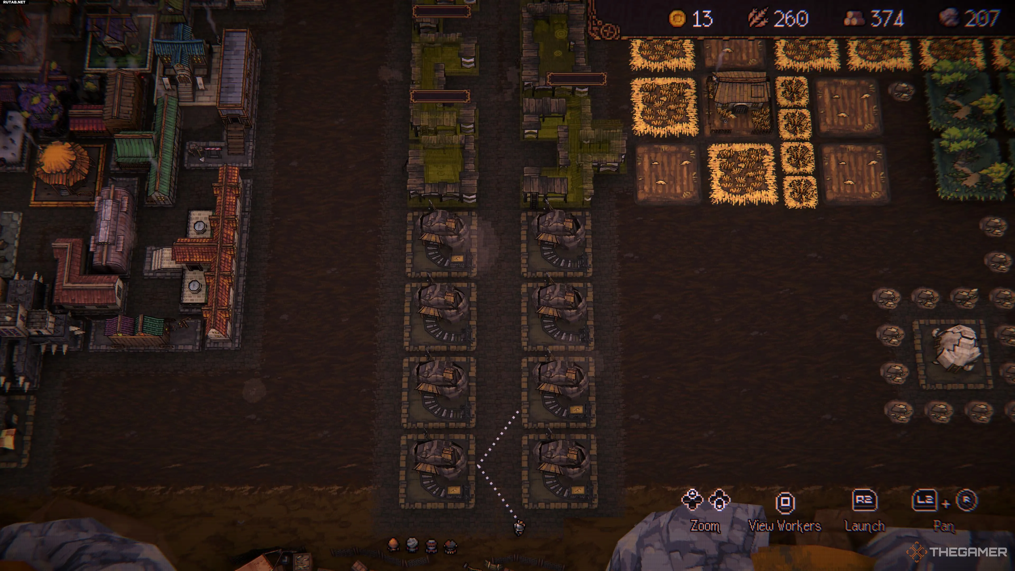 Изначально придётся создавать поля и шахты, но с новыми Чертежами появятся постройки вроде Ферм, которые автоматически собирают урожай с окружающих пшеничных полей. Также есть отдельные структуры для Дерева и Камня.