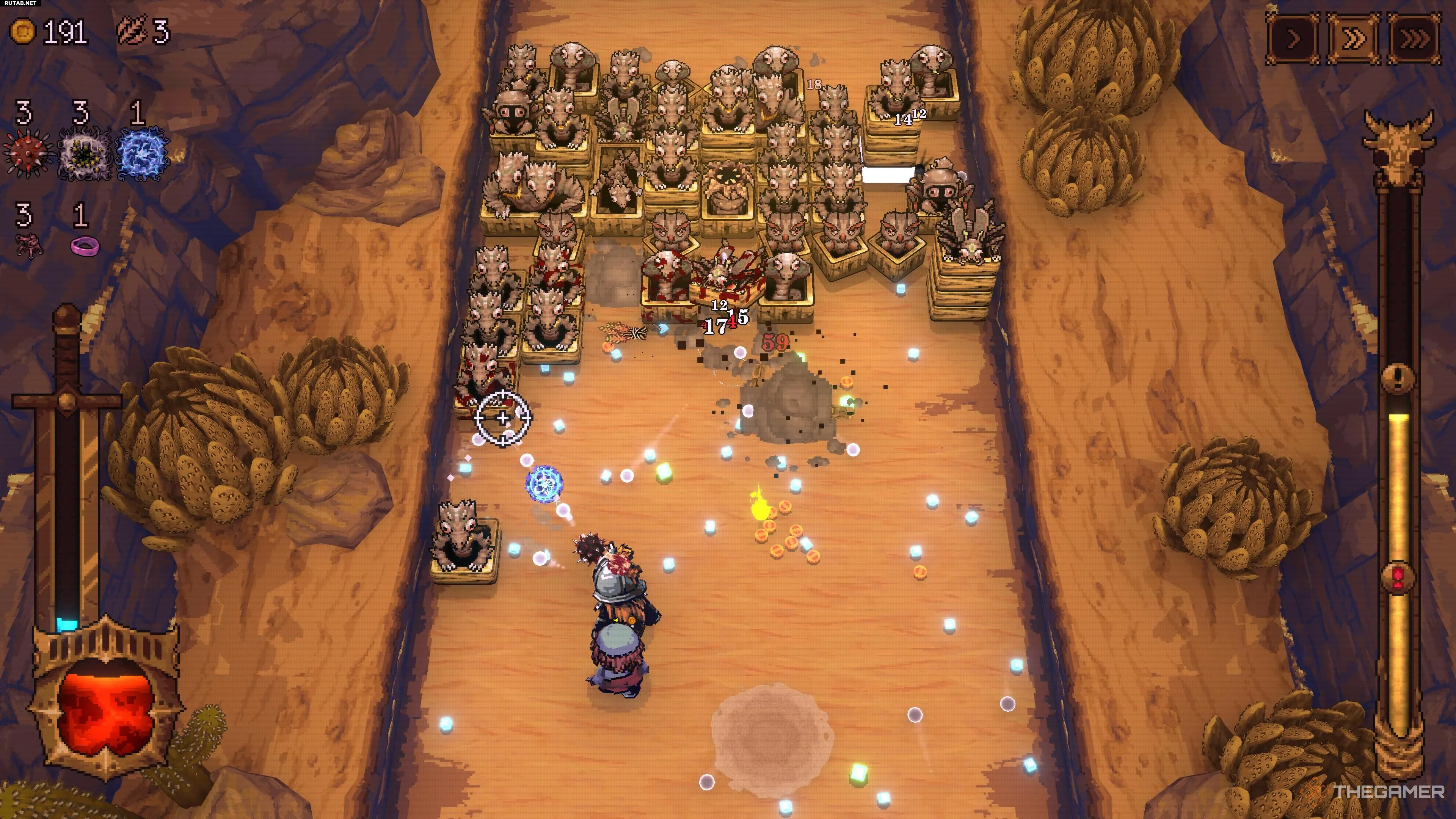 Также стоит как можно раньше построить Некроманта — эта постройка позволяет один раз за забег воскреситься (с небольшим запасом здоровья).