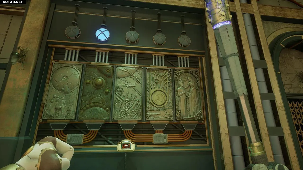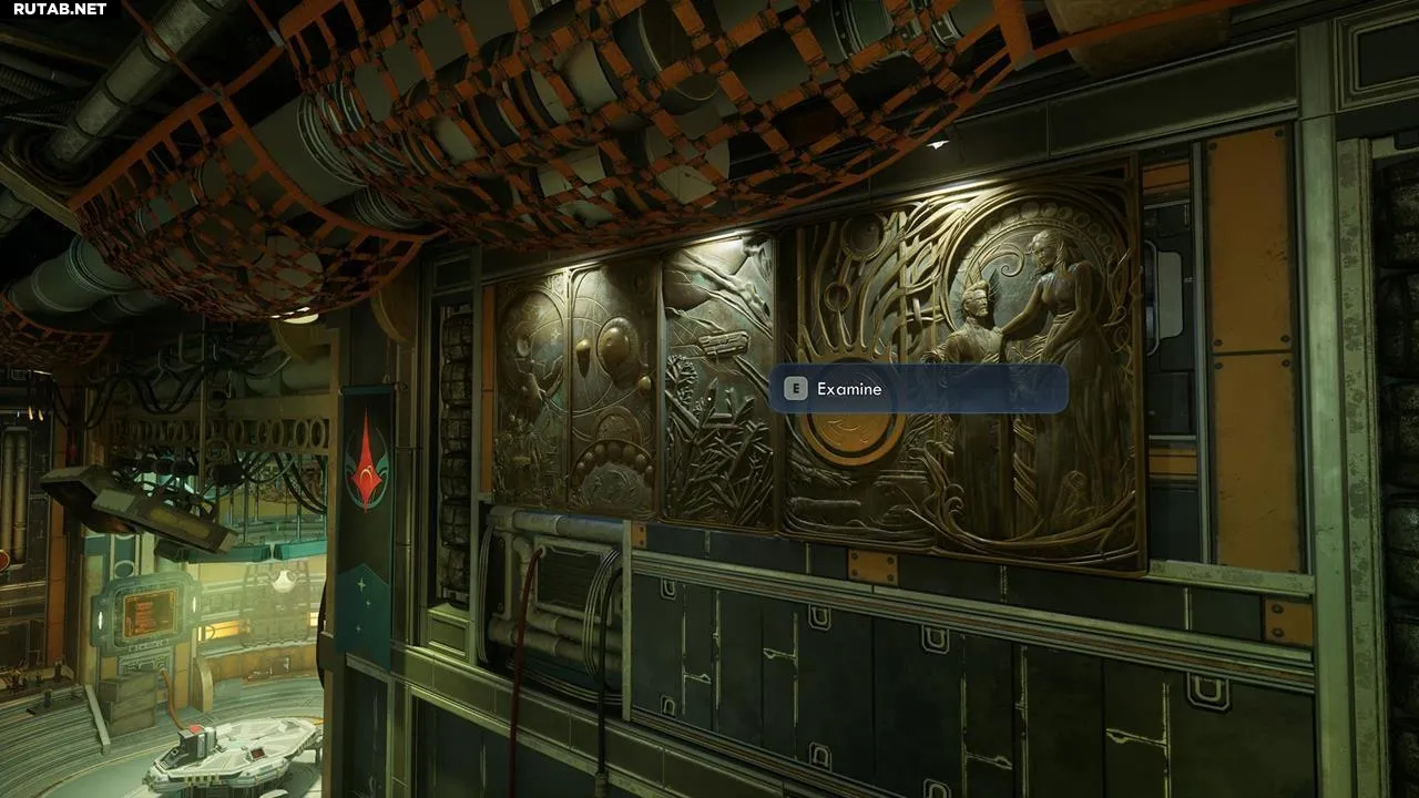 Первая фреска фактически запускает квест. Просто выйдите из корабля и пройдите внутрь станции, примыкающей к месту посадки. На стене вы увидите фреску. Перед ней находится запись, рассказывающая о изображённых событиях. Взаимодействуйте с фрагментом фрески более тёмного оттенка, чтобы подобрать предмет.