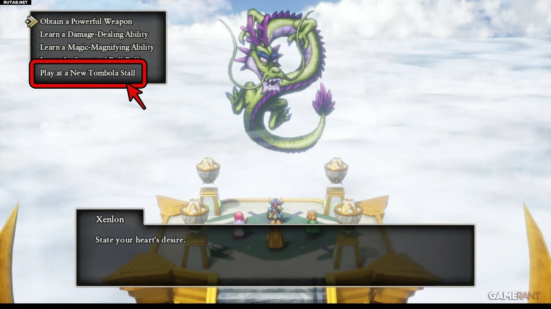 Чтобы разблокировать стол томболы в Цитадели Облачных Врат, нужно подняться на башню цитадели и победить Ксенлона за 25 ходов. После этого он предложит вам одно желание. Выберите новый стол томболы. Один розыгрыш здесь стоит три билета томболы.