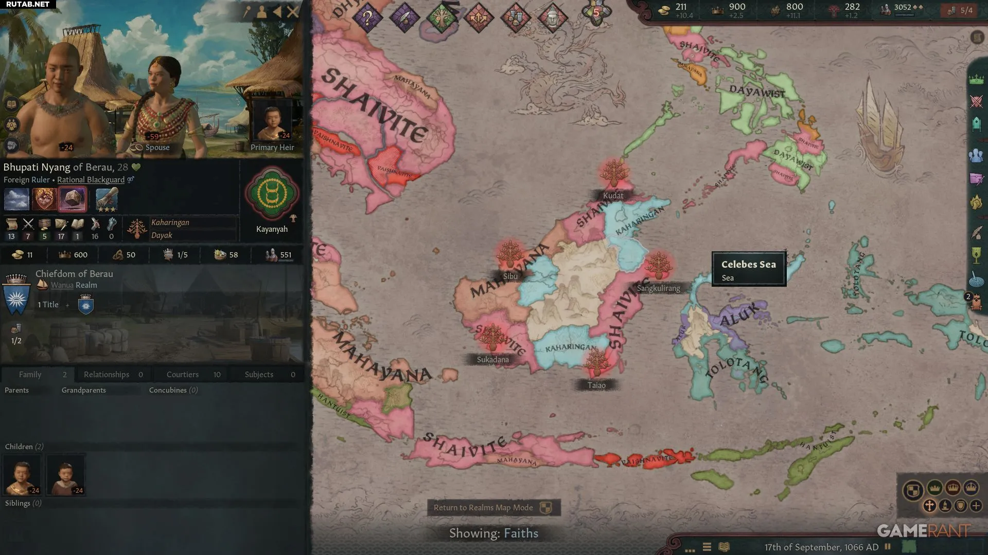 Хотя на юго-востоке расширенной карты есть множество владений типа Вануа, особый интерес представляет остров Борнео. В 1066 году последователи веры Кахаринга не контролируют ни одного из пяти святых мест. Играя за Бхупати Ньянга из Берау, одного из самых молодых лидеров этой веры, игроки могут попытаться вернуть святой остров, попутно собирая черепные трофеи.