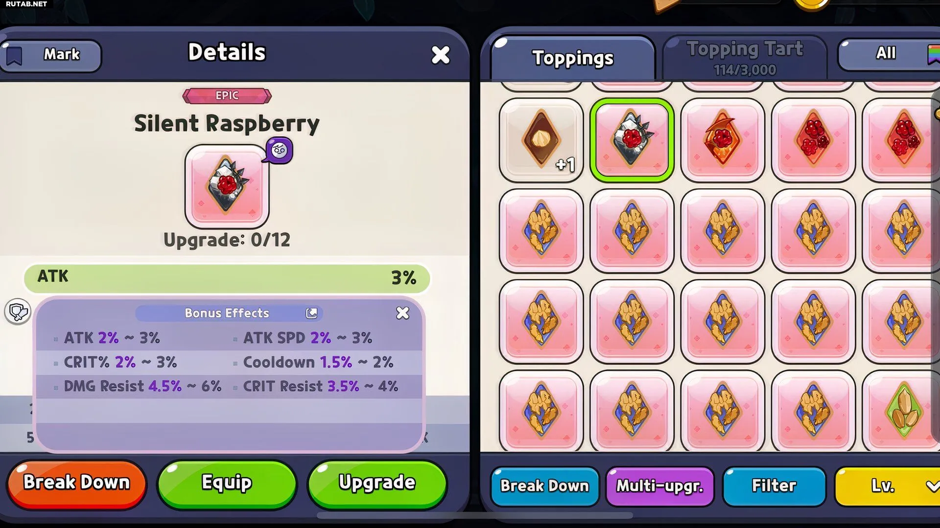 Поскольку Silent Salt — основной воин, стоит делать упор на его силу атаки и скорость перезарядки (в зависимости от режима игры можно также увеличивать HP). Защиту, лечение и сопротивление ослаблениям лучше доверить другим членам команды. Лучший выбор топпингов — Searing Raspberry, который превратит его в мощного танка-убийцу как в PvP, так и в PvE.