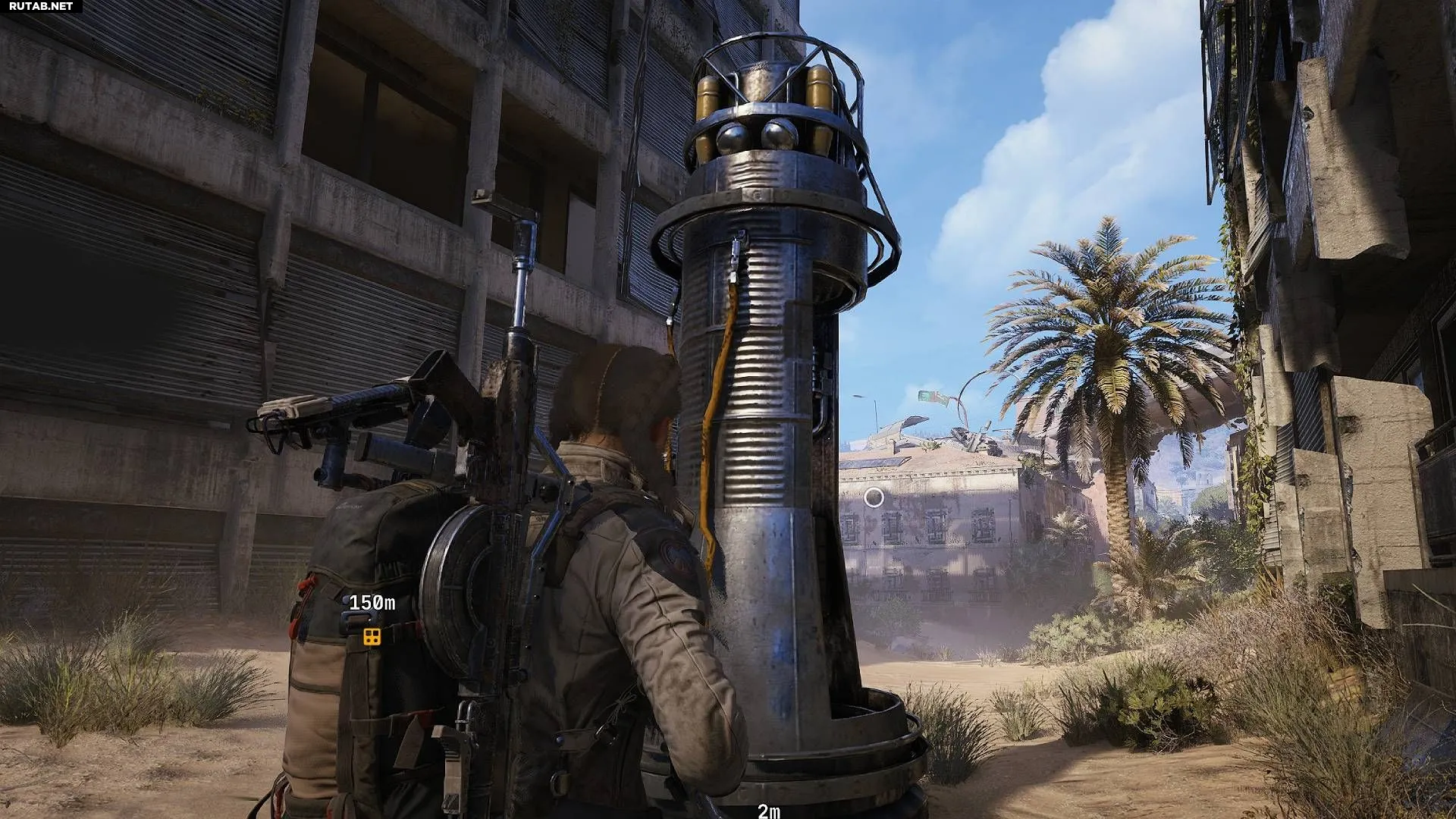 Станция расположена на углу здания. Взаимодействуйте с ней, и через короткое время контейнер с припасами приземлится рядом со зданием.