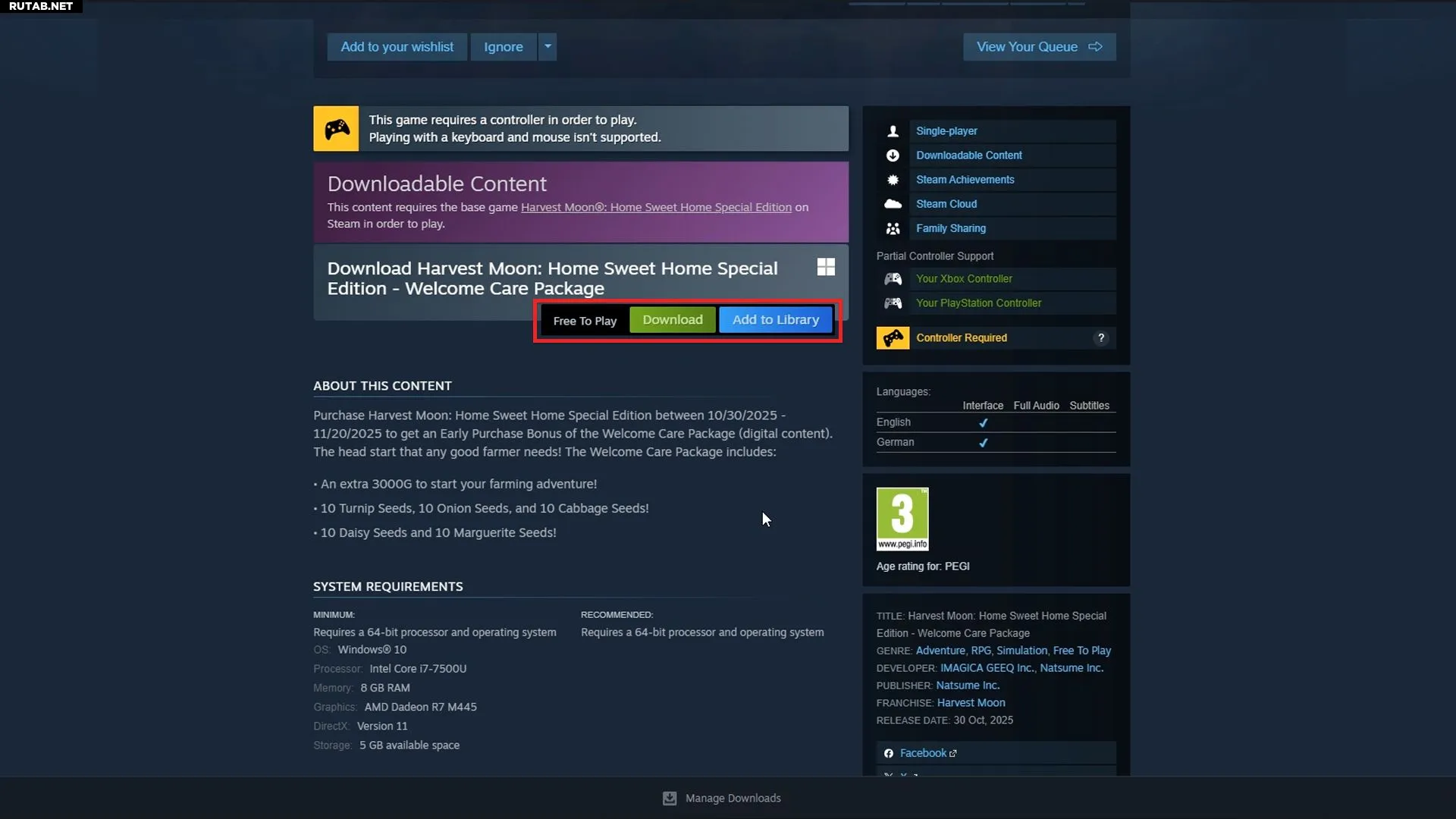 Чтобы получить приветственный набор в Harvest Moon: Home Sweet Home, нужно найти цифровой контент и загрузить его. Процесс напоминает установку DLC.