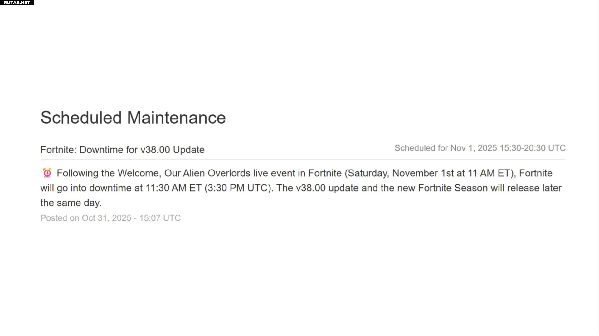 Epic Games подтвердила, что даунтайм запланирован на субботу, 1 ноября, в 11:30 утра. Это означает, что серверы будут отключены через 30 минут после начала живого ивента «Симпсонов».
