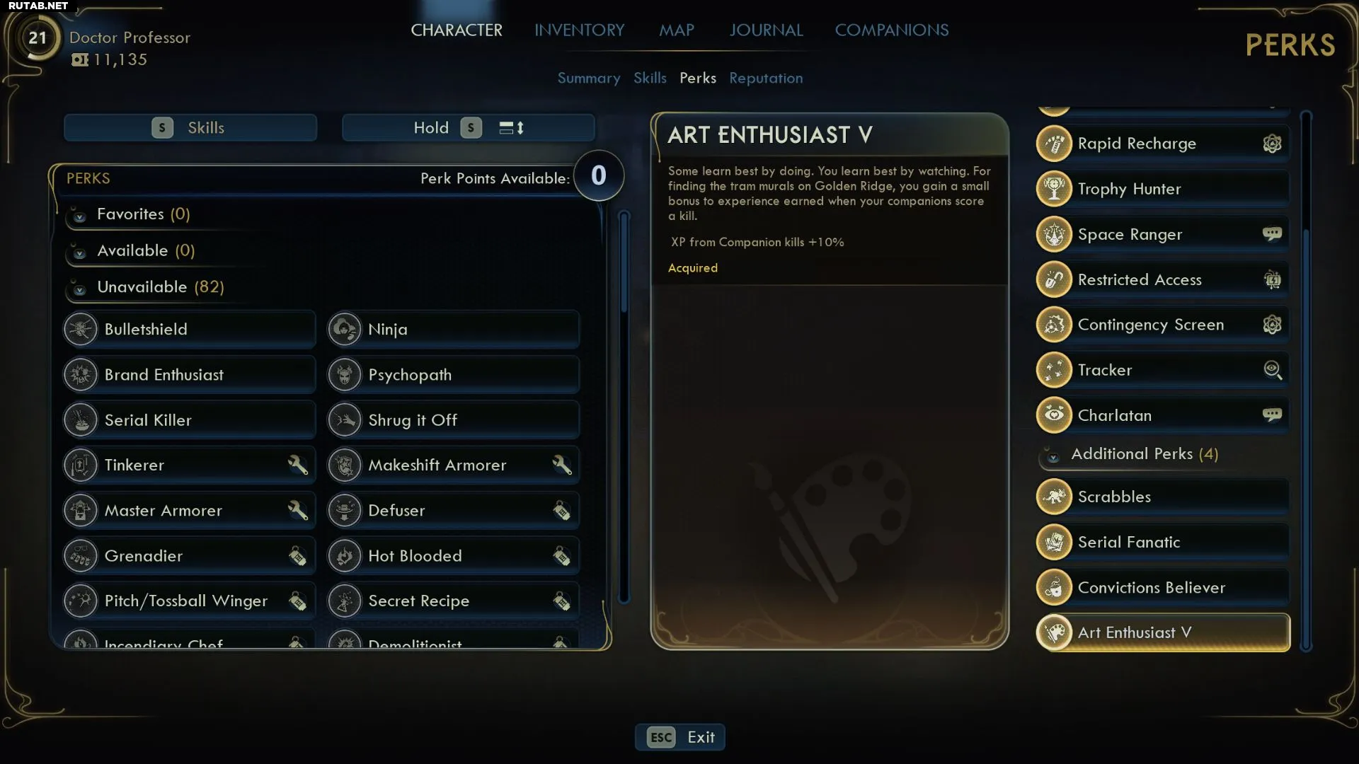 При сборе фресок вы будете повышать уровень уникального умения «Ценитель искусства», которое автоматически получается при нахождении первой фрески. Изначально умение даёт +2% к опыту за убийства, совершённые спутниками. Каждая найденная фреска увеличивает этот бонус на 2%, достигая максимума в 10% на 5 уровне.
