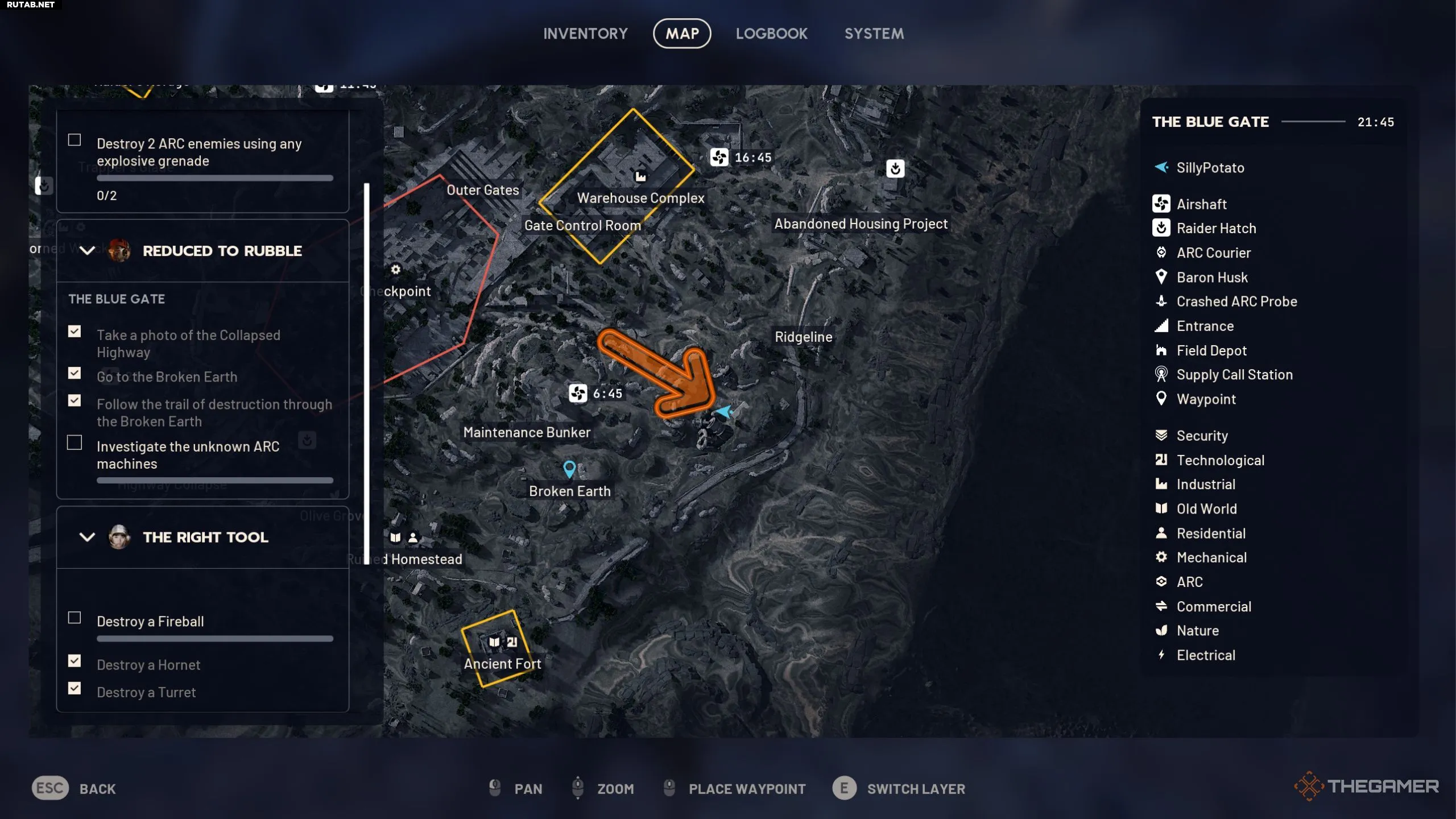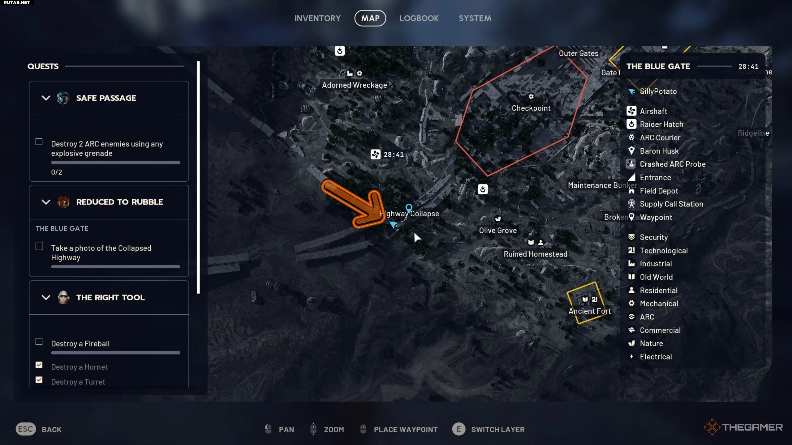 Первая часть задания «Сведено к руинам» просит вас сфотографировать обрушившееся шоссе. Эта локация находится на юго-западе карты «Синие Ворота». Приблизьте карту, и вы увидите её в нижнем левом углу от контрольной точки.