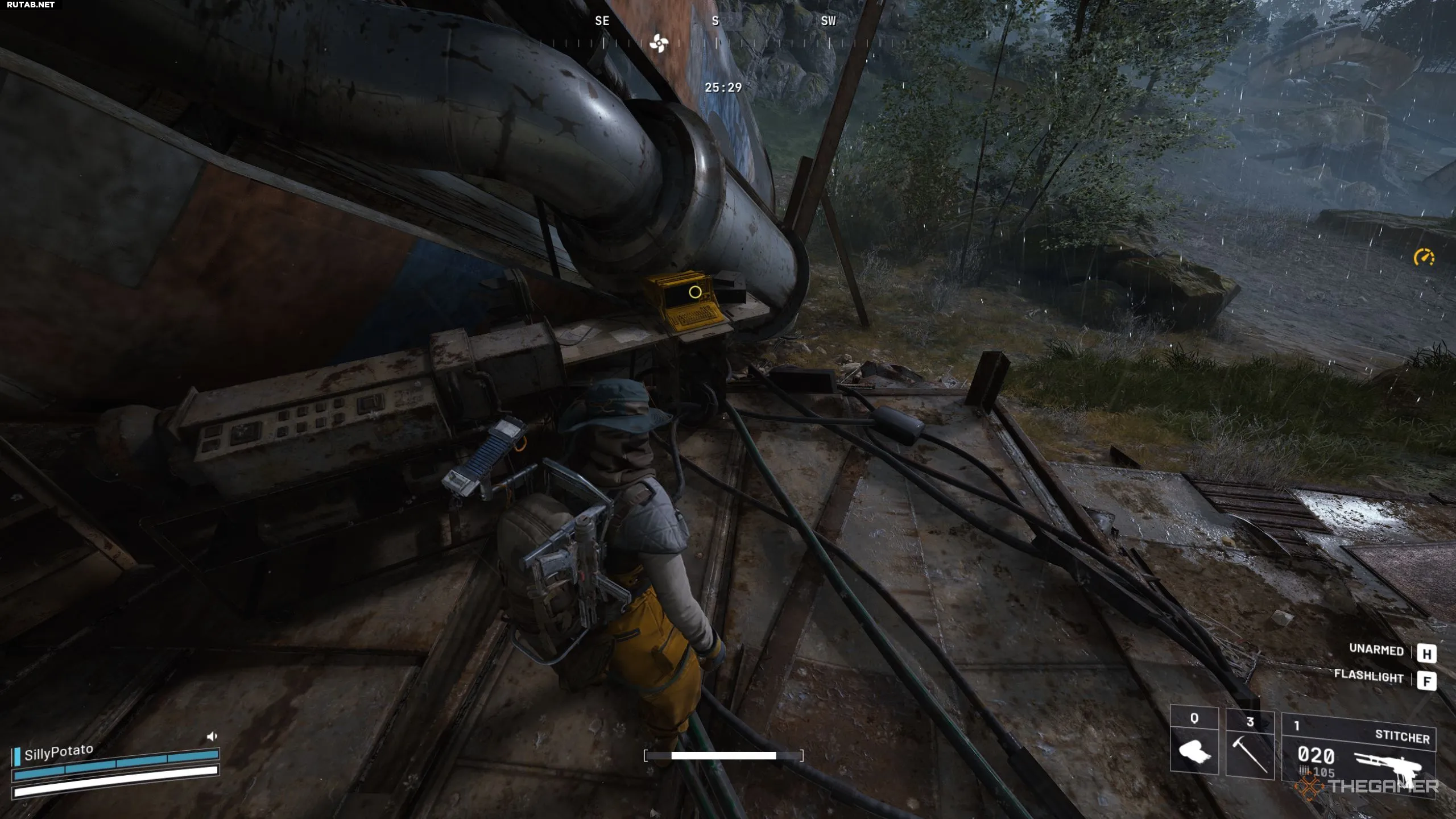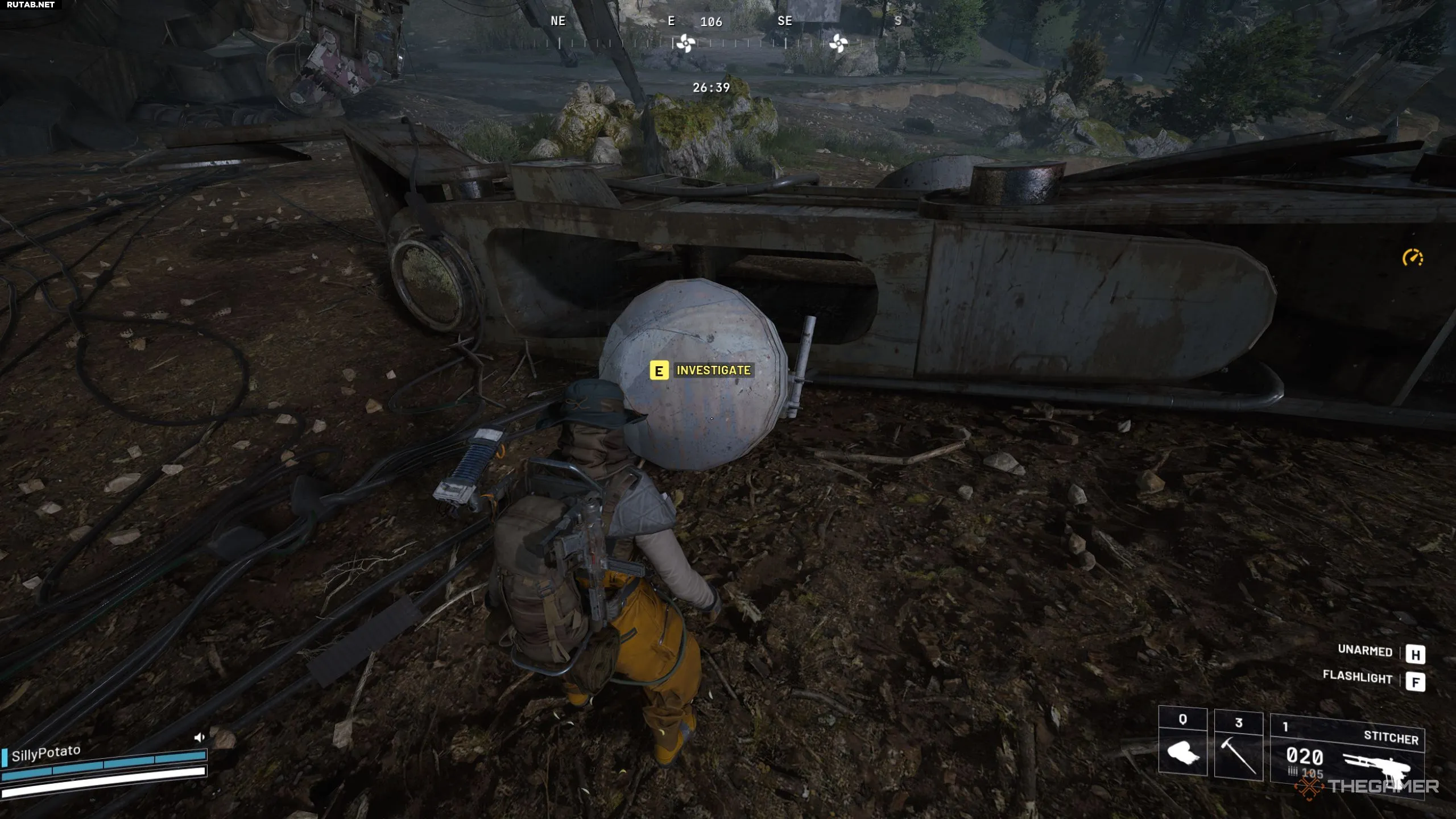 Доберитесь до этой машины и двигайтесь в юго-западном направлении, чтобы найти отделившуюся часть. На этой детали вы увидите круглую секцию, которая светится значительно ярче остальной машины. Подойдите ближе, и вы получите необходимое взаимодействие для завершения первой части задания.