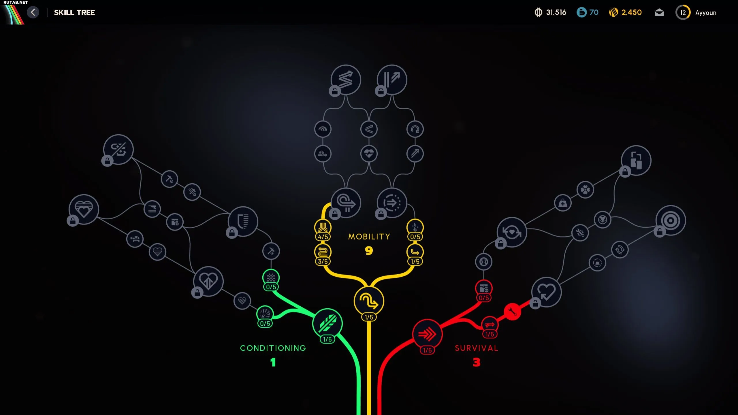 | Мобильность | Спокойный шаг | Запас сил восстанавливается при ходьбе как при стоянии на месте | Запас сил - один из самых сложных параметров для управления. Эти три навыка работают вместе, позволяя дольше бежать, преодолевать большие расстояния и быстрее восстанавливать силы |