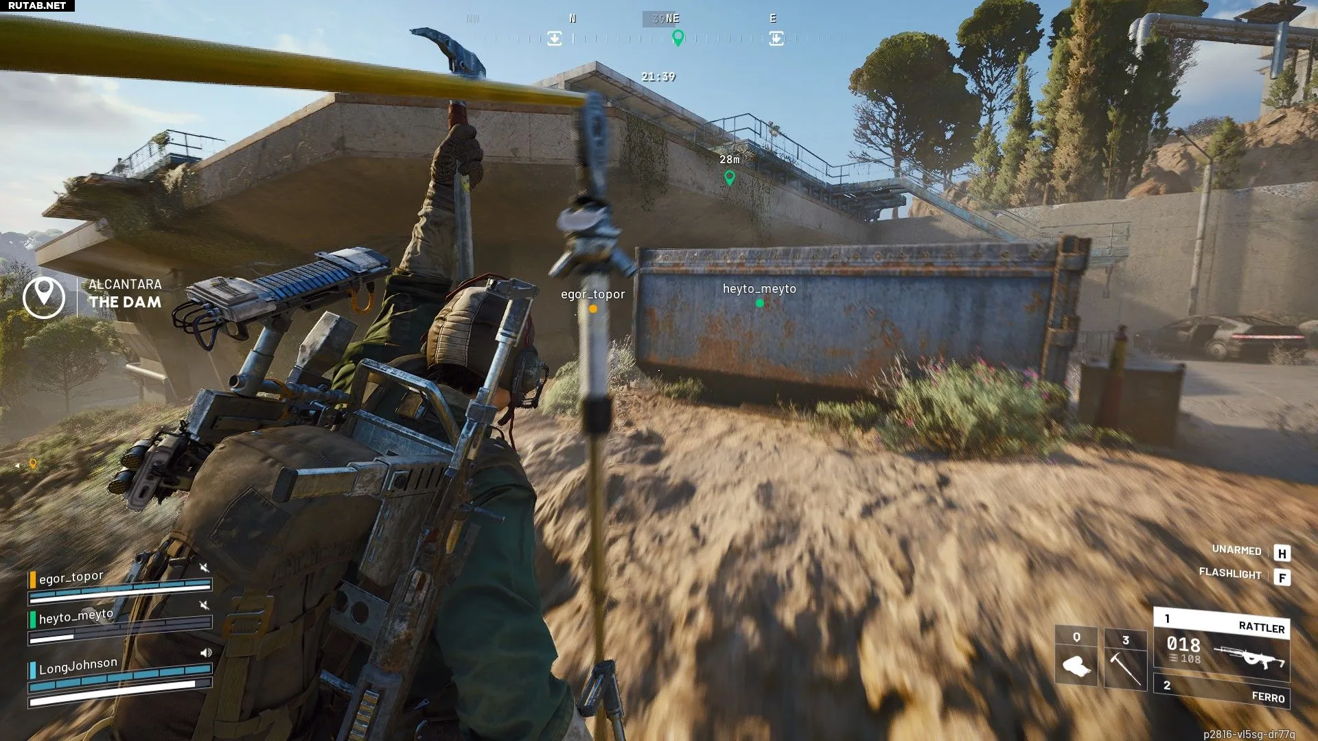 Правило №1: экипированное оружие утомляет Рейдера и замедляет движение. Это касается и кирки. Чтобы быстрее перемещаться по карте, убирайте оружие в ножны. Используйте H на ПК или Triangle/Y на консолях.