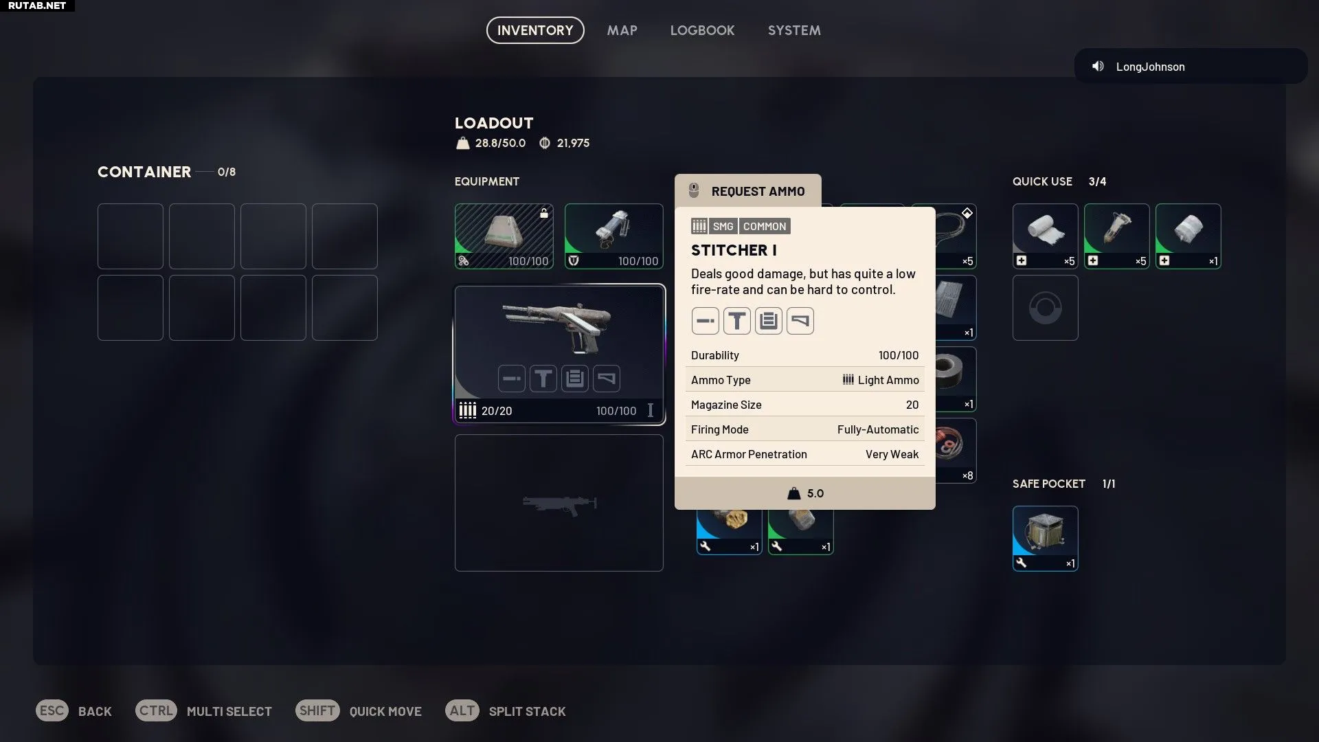Перегрузка влияет на скорость движения и потребление выносливости. Следите не только за заполнением рюкзака, но и за индикатором перегрузки под снаряжением.