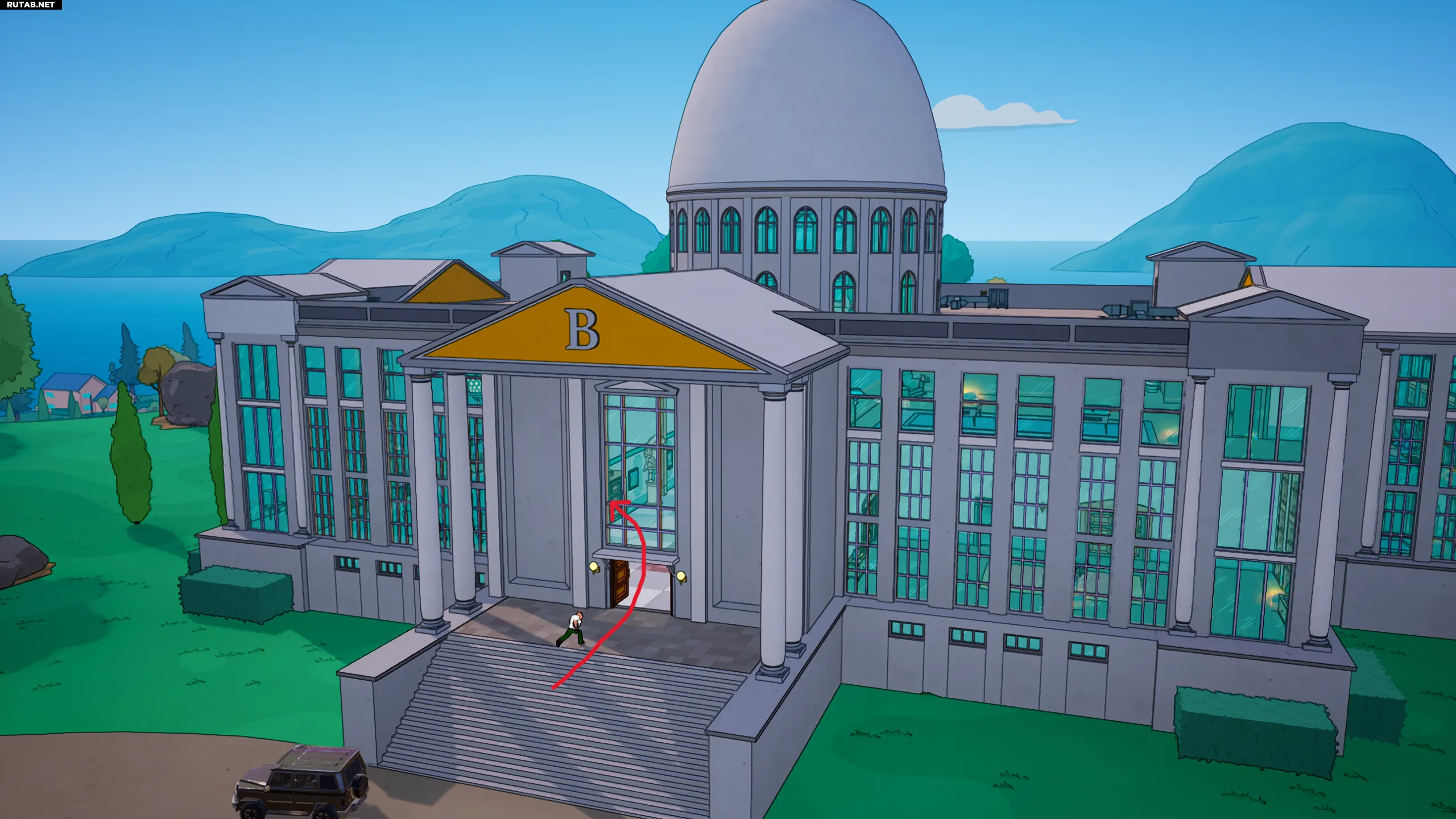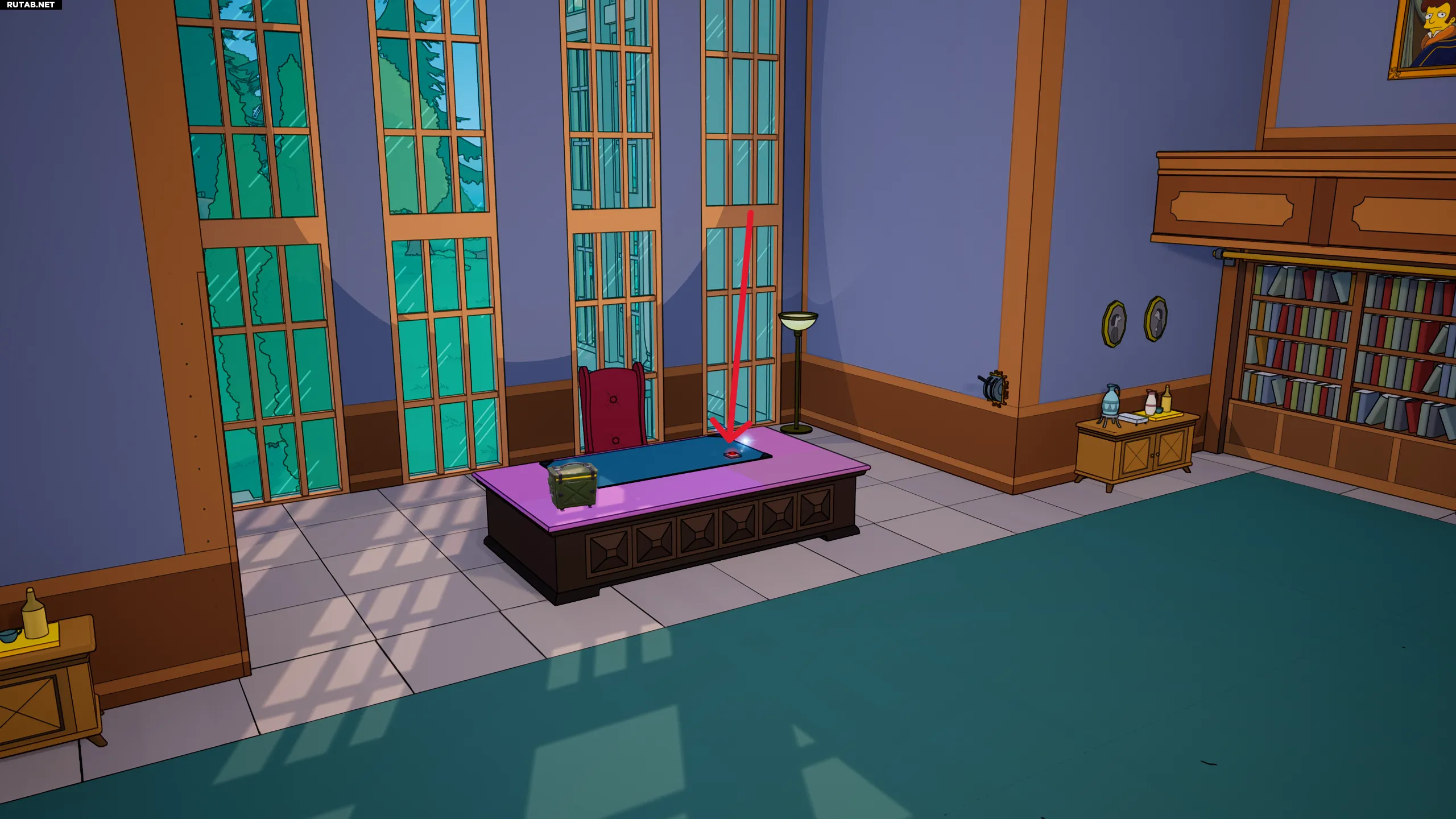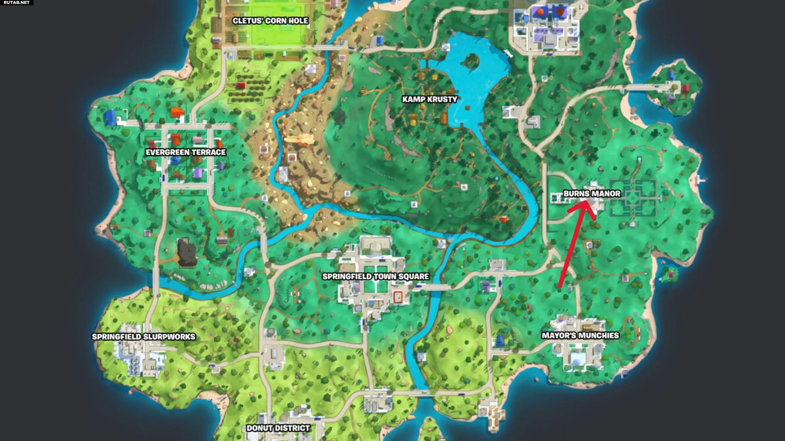 Чтобы выпустить собак, направляйтесь в поместье Бернса — это самая правая точка интереса на карте королевской битвы. Пройдите через главные двери особняка и сразу поверните налево в кабинет мистера Бернса. На его столе вы найдете красную кнопку — взаимодействуйте с ней, чтобы выпустить доберменов.