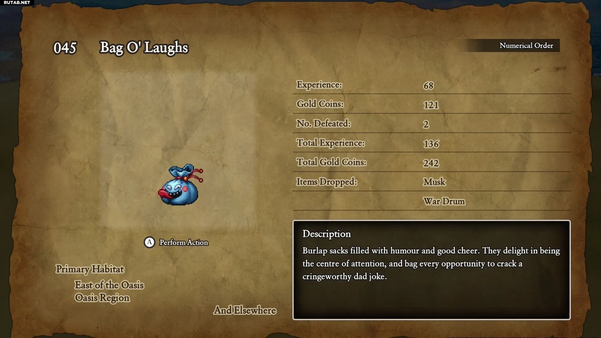 Однако есть исключения, и в пустынной местности вокруг Оазиса можно встретить двух полезных противников для фарма. Во-первых, игрокам стоит найти антропоморфных врагов-мешки под названием Сумки Смеха, которые при убийстве дают 121 золотую монету. На данном этапе игры это практически целое состояние.