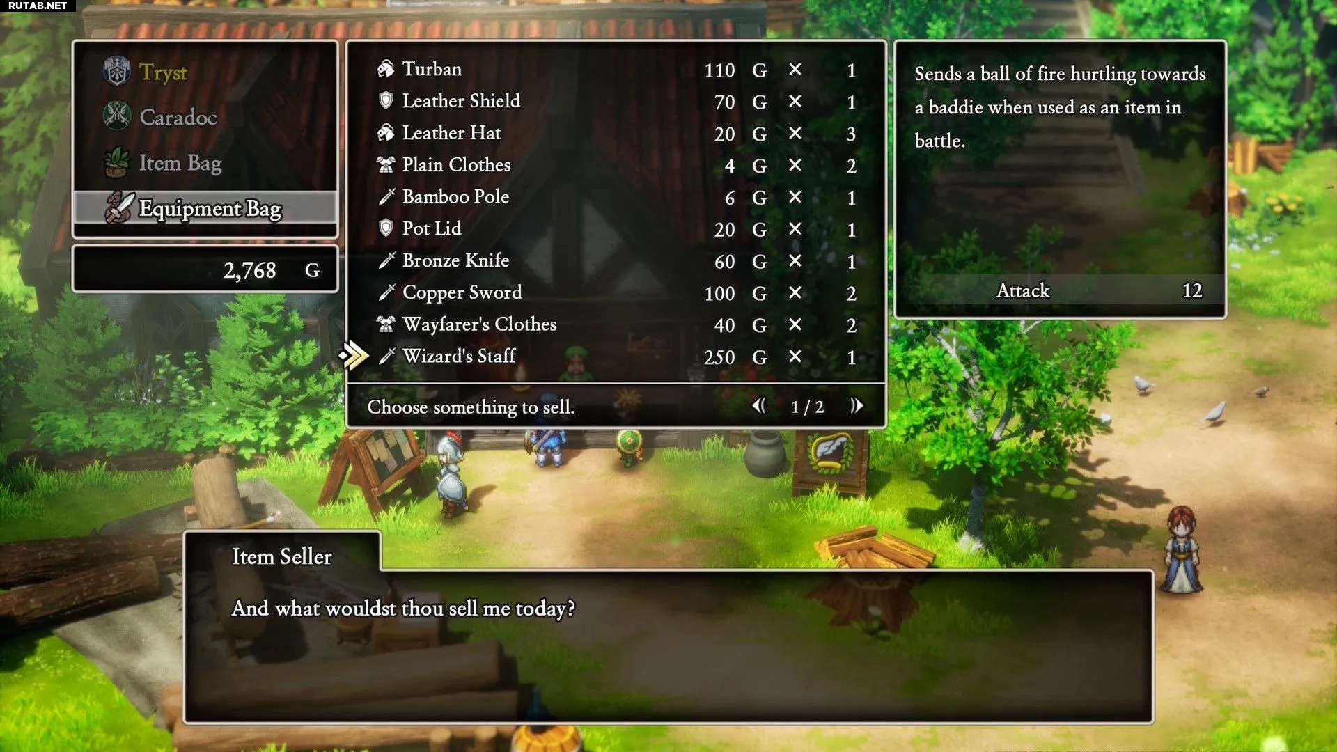 Эта экипировка полезна в бою, так как при использовании в качестве предмета она выпускает огненные шары. Герой в Dragon Quest 2 Remake долгое время не может естественным образом использовать заклинания, что делает этот «чит» полезным в трудную минуту. Что важнее, Посох Волшебника можно продать в магазине за 250 золотых. Таким образом, при удаче игроки могут фармить этот предмет и продавать его с прибылью. Возможно, стоит вернуться в это подземелье после получения Карадока, чтобы фармить Посохи Волшебника было легче с тремя членами отряда, включая Матильду, или даже подождать дольше и вернуться уже с Перонель.