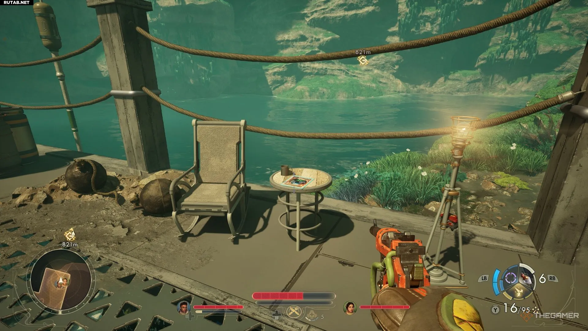 Спуститесь на лифте вниз, пройдите по пути до рыбацкой хижины. Журнал лежит на столе у воды.