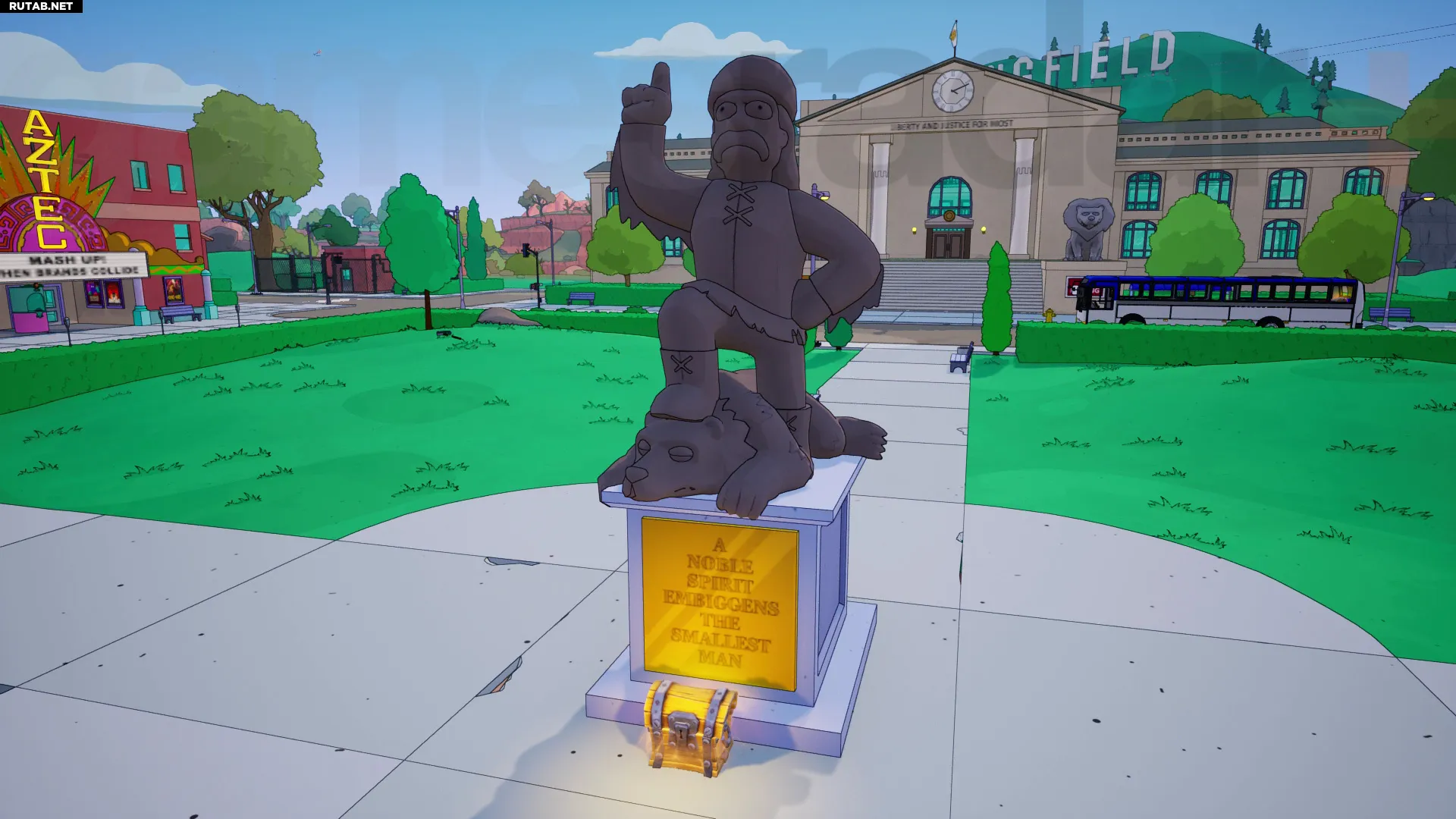 Чтобы воссоздать классический трюк Барни Гамбла, поищите грабли на травянистых участках площади Спрингфилда рядом со статуей Иедедии. Просто наступите на металлический конец, чтобы грабли ударили вас по лицу и отметили ещё одну шутку.