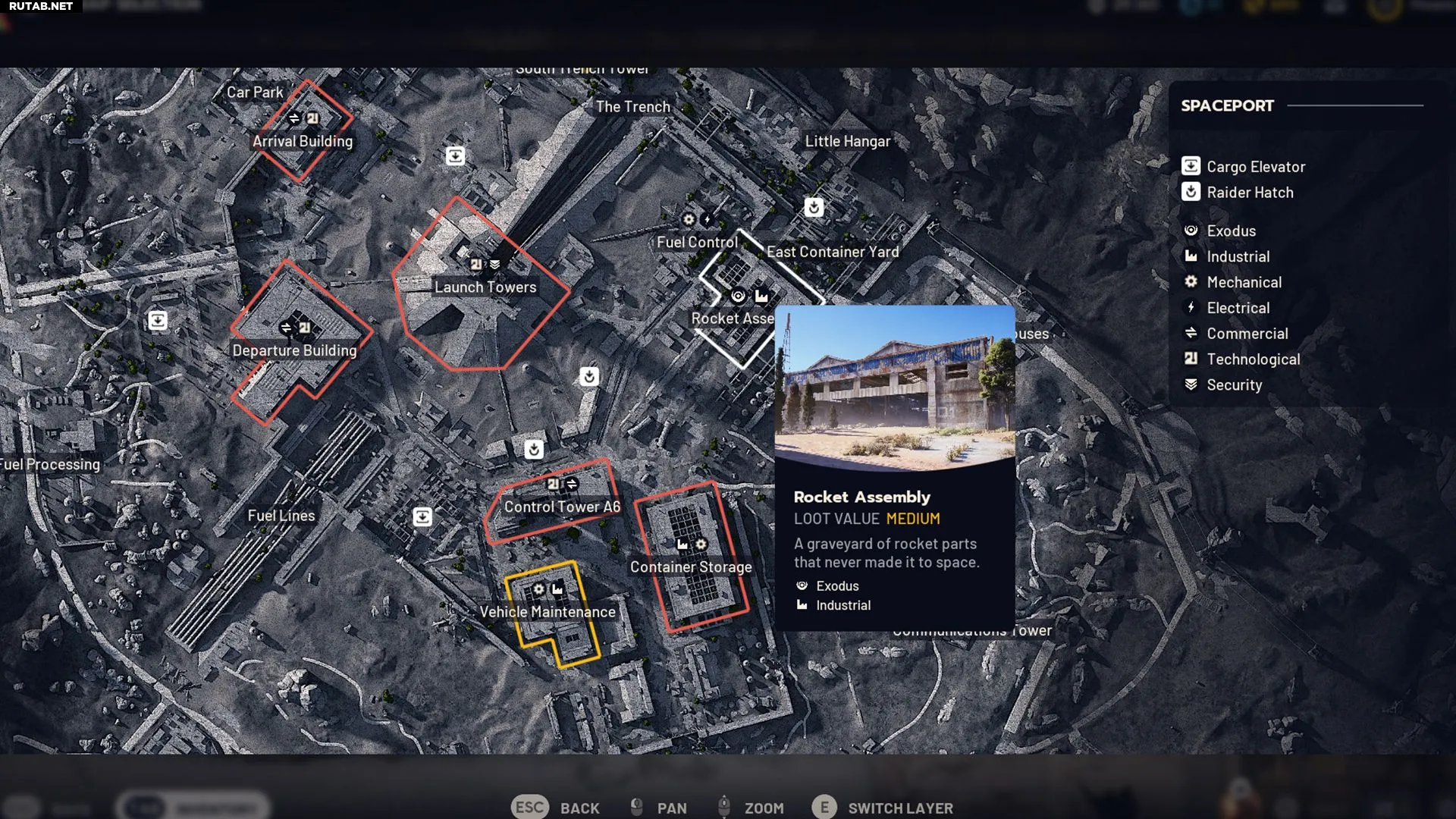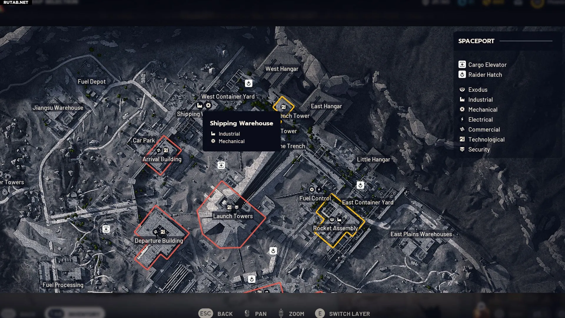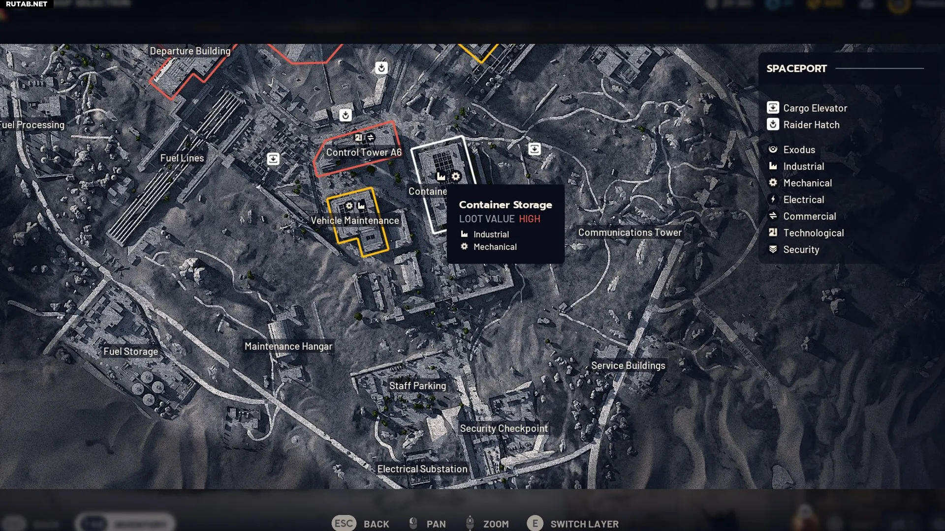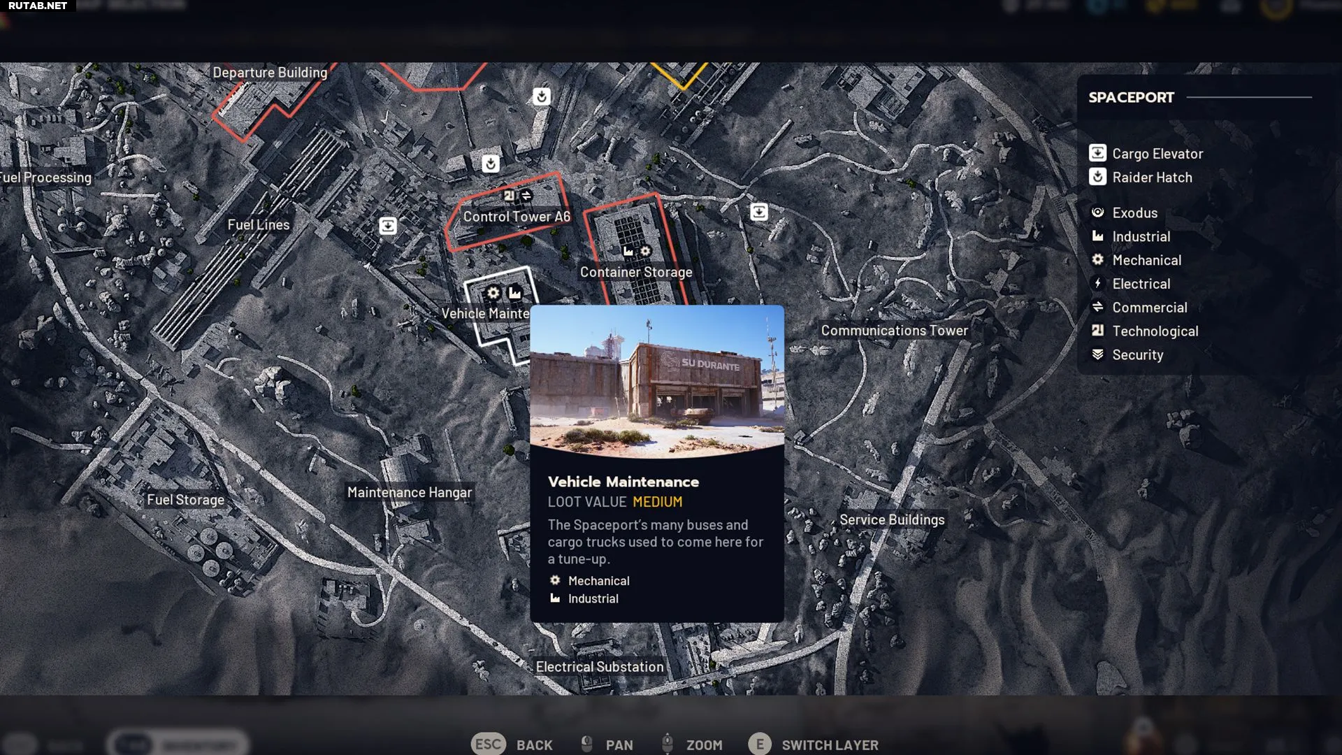 - Космопорт — промышленные зоны сконцентрированы в центре карты, что делает поиск более эффективным.