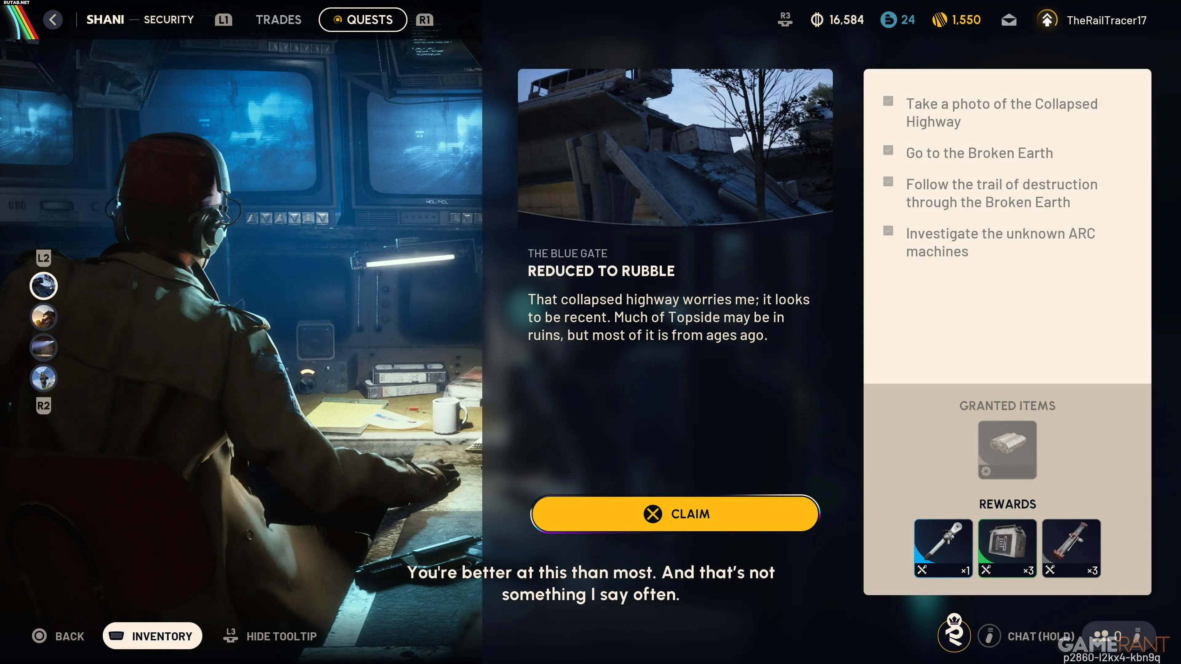 В игре есть различные торговцы, которые дают квесты. Эти задания варьируются от поиска特定ных предметов до более сложных целей, таких как уничтожение врагов ARC определённым способом. Один из квестов торговца Шани называется «Сведено к руинам».
