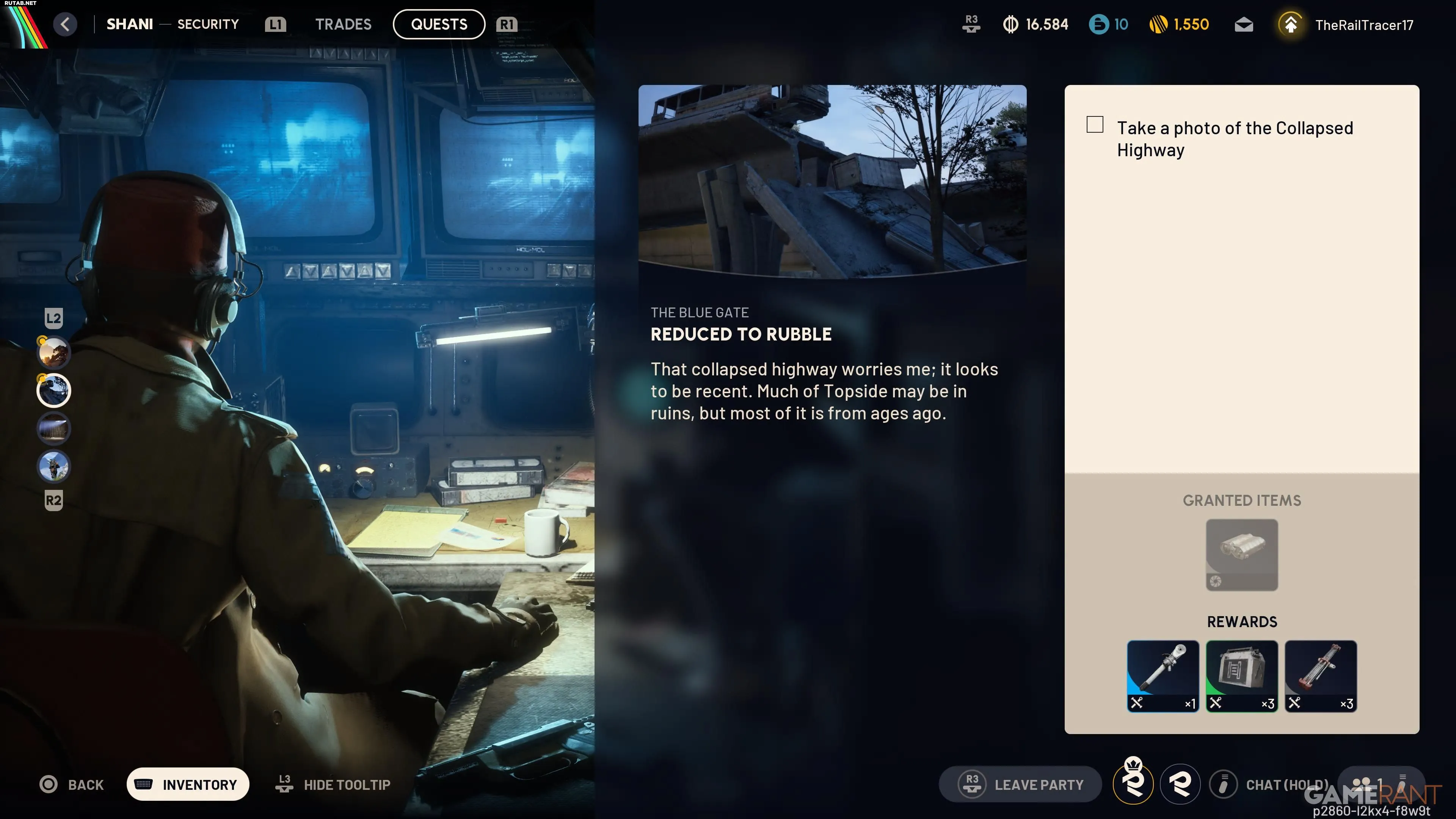 «Сведено к руинам» — это квест от Шани, который требует от вас отправиться на карту «Синие Врата» и сделать фотографию. Это первое из четырёх небольших заданий в рамках этого квеста. Начните забег на карте «Синие Врата». Если вы планируете только выполнить квест, а не собирать лут, можете выбрать бесплую экипировку. После прибытия направляйтесь к «Обвалу на шоссе» на юго-западе карты.