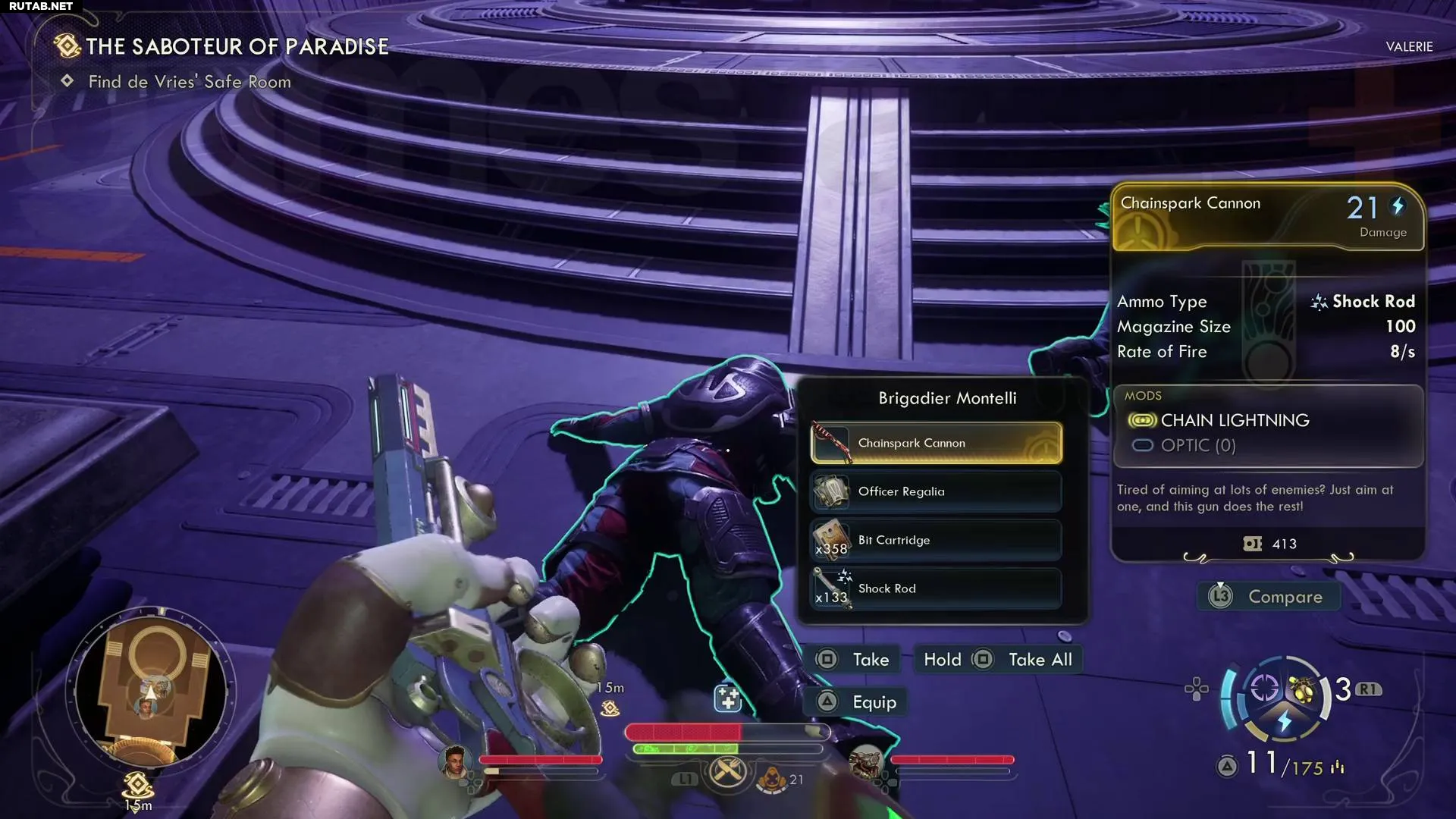 Кроме того, наденьте тяжёлую броню (желательно с модификацией Поглощение шока) и активно используйте гаджеты The Outer Worlds 2 (особенно Тактильное временное замедление и Газо-энергетический отклоняющий аппарат), способности спутников и гранаты, чтобы оказывать давление на Монтелли и по возможности укрываться. Он также призывает стражников — лучше всего расправляться с ними как можно быстрее, иначе они выбьют вас из укрытия. Способность спутника Найлса хороша для отвлечения их внимания, но в процессе он может быть выведен из строя.