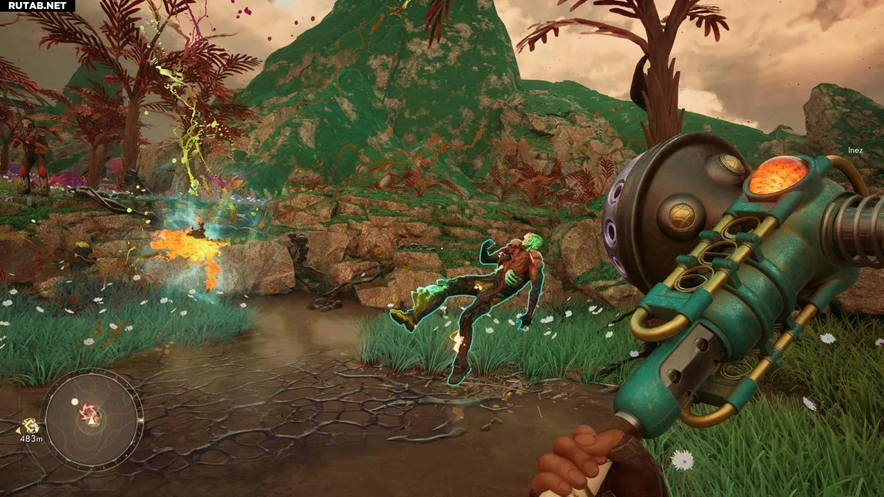 - Модификатор: Био-шквал — выпускает залп прыгучих сгустков слизи. Прицеливание позволяет захватить цель и наводить снаряды на врагов.