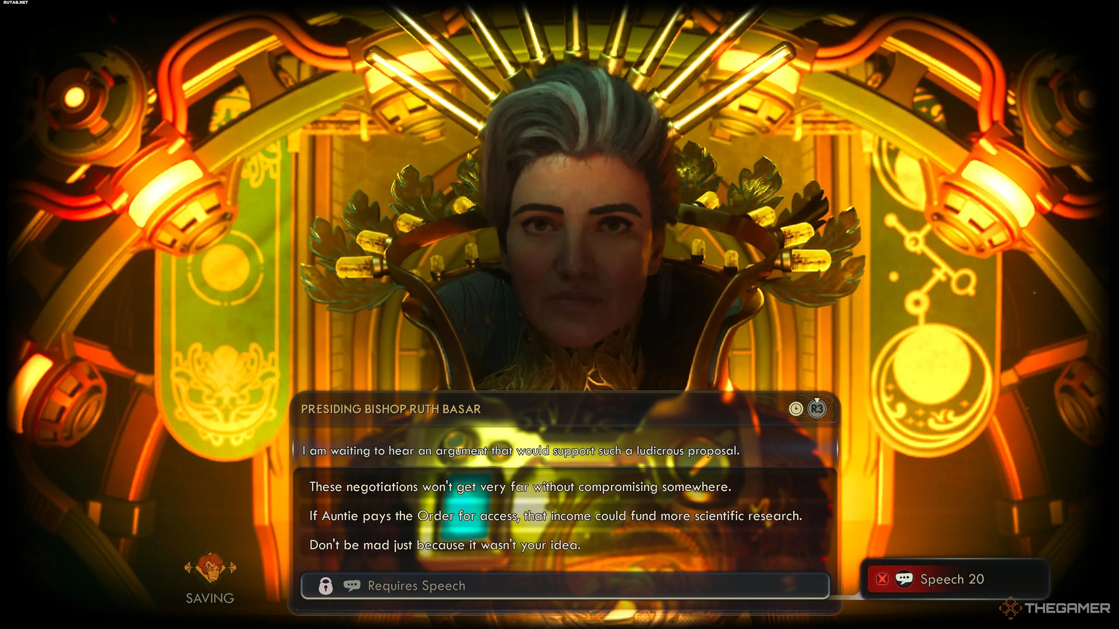 Рут, однако, менее сговорчива. Независимо от того, обратитесь ли вы к ней первой или нет, она будет скептически относиться к идее альянса как к жизнеспособной. Не волнуйтесь, если не сможете пройти проверки навыков — просто выберите вариант, в котором говорится, что Орден опасается проиграть на переговорах. Она всё равно не будет в восторге, но станет более склонна хотя бы провести встречу. В худшем случае стороны останутся при своих позициях.