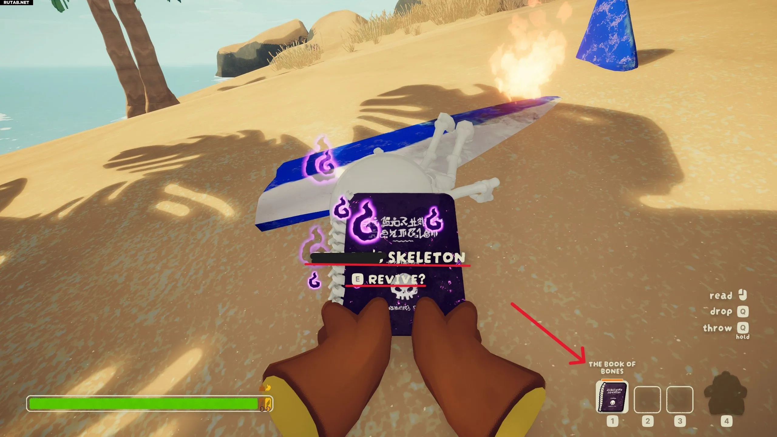 Если вы видите скелет другого игрока, можно нажать кнопку взаимодействия, держа Книгу Костей, чтобы воскресить его в облике скелета. Если же воскрешать некого, чтение книги превратит в скелета вас самих.