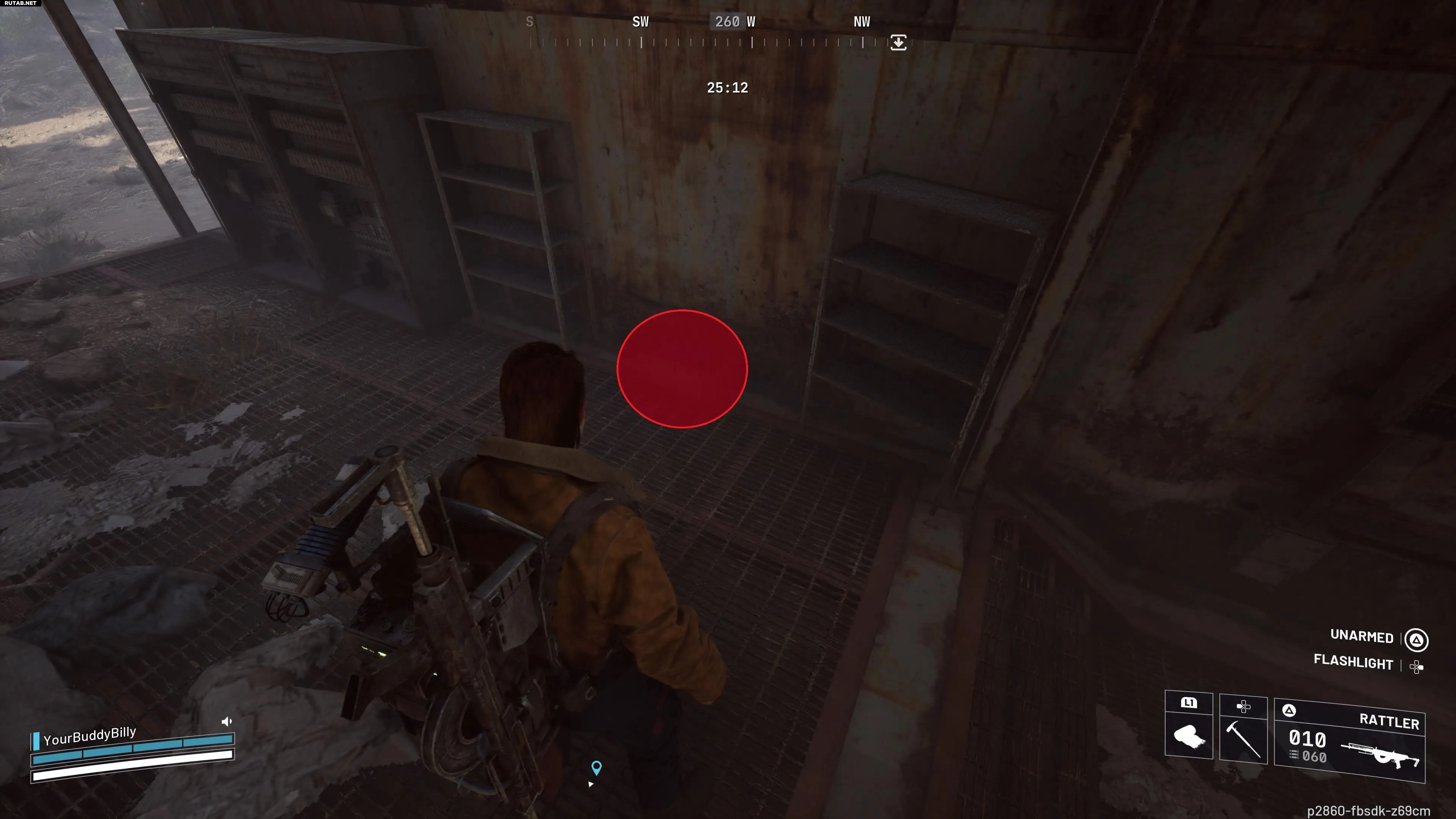 От склада двигайтесь на юг, пока не увидите большие трубы, выходящие из земли. Рядом с одной из них — ещё одна коробка с кассетой.