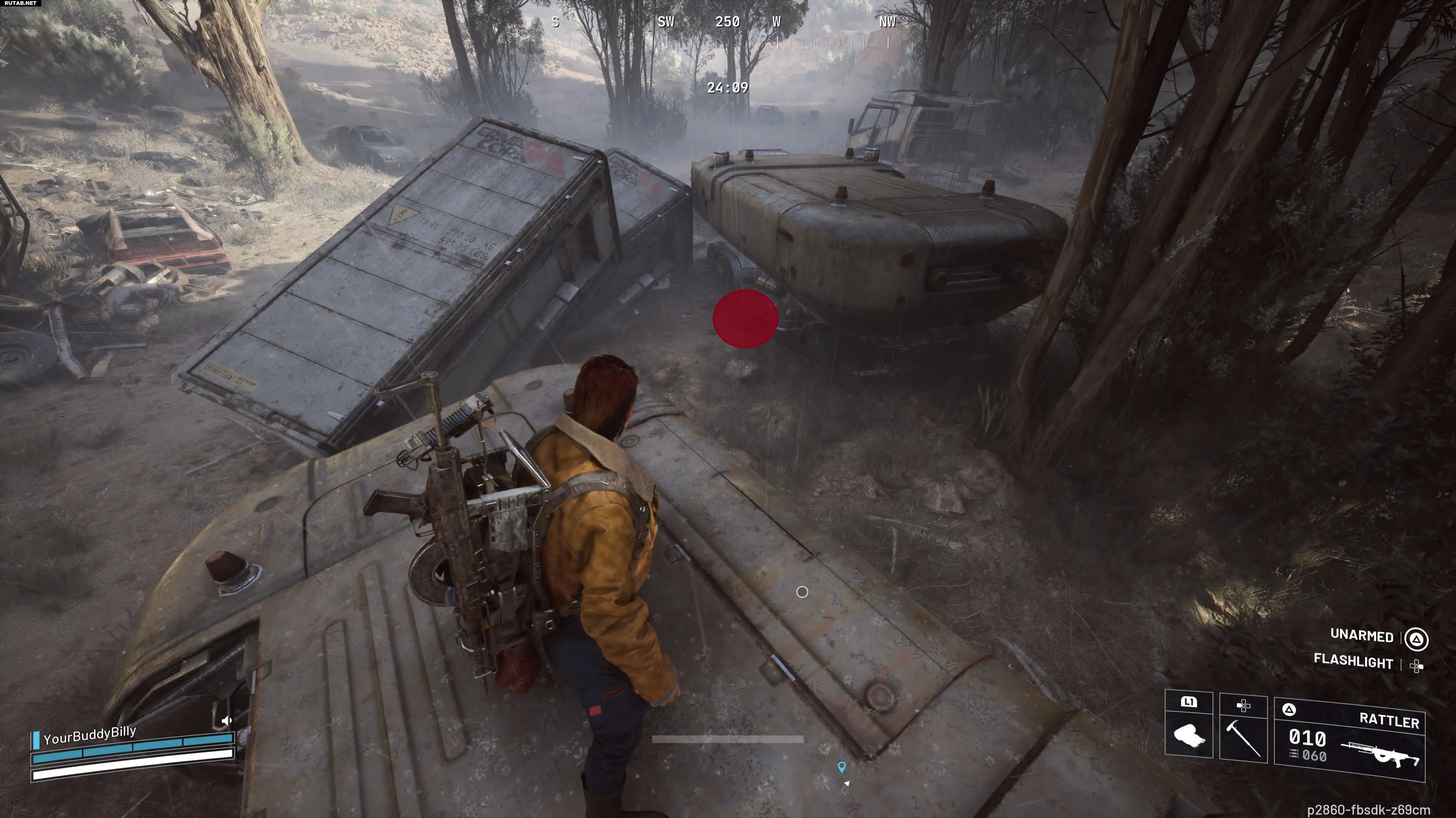Продолжайте движение на юг, пока не заметите зону с разбитой техникой. Переберитесь через неё и спуститесь вниз. В углу будет последняя коробка с компасом.