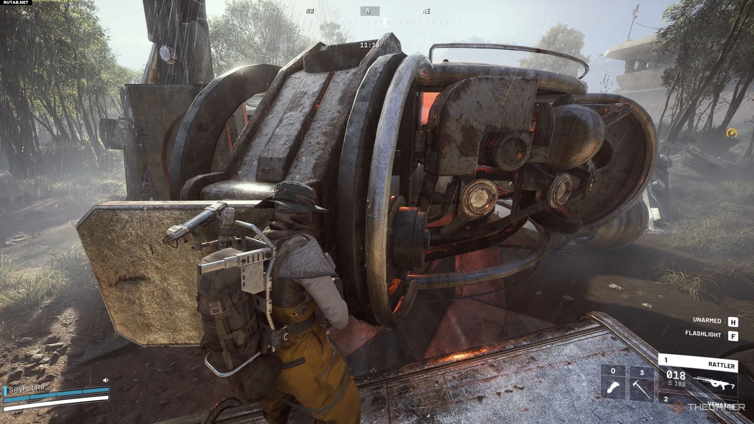 Еще одного можно найти в районе Старых полей сражений. Добравшись до этих мест, вы не пропустите баронов — это гигантские машины, у которых ноги разбросаны вокруг, а большой корпус находится посередине.